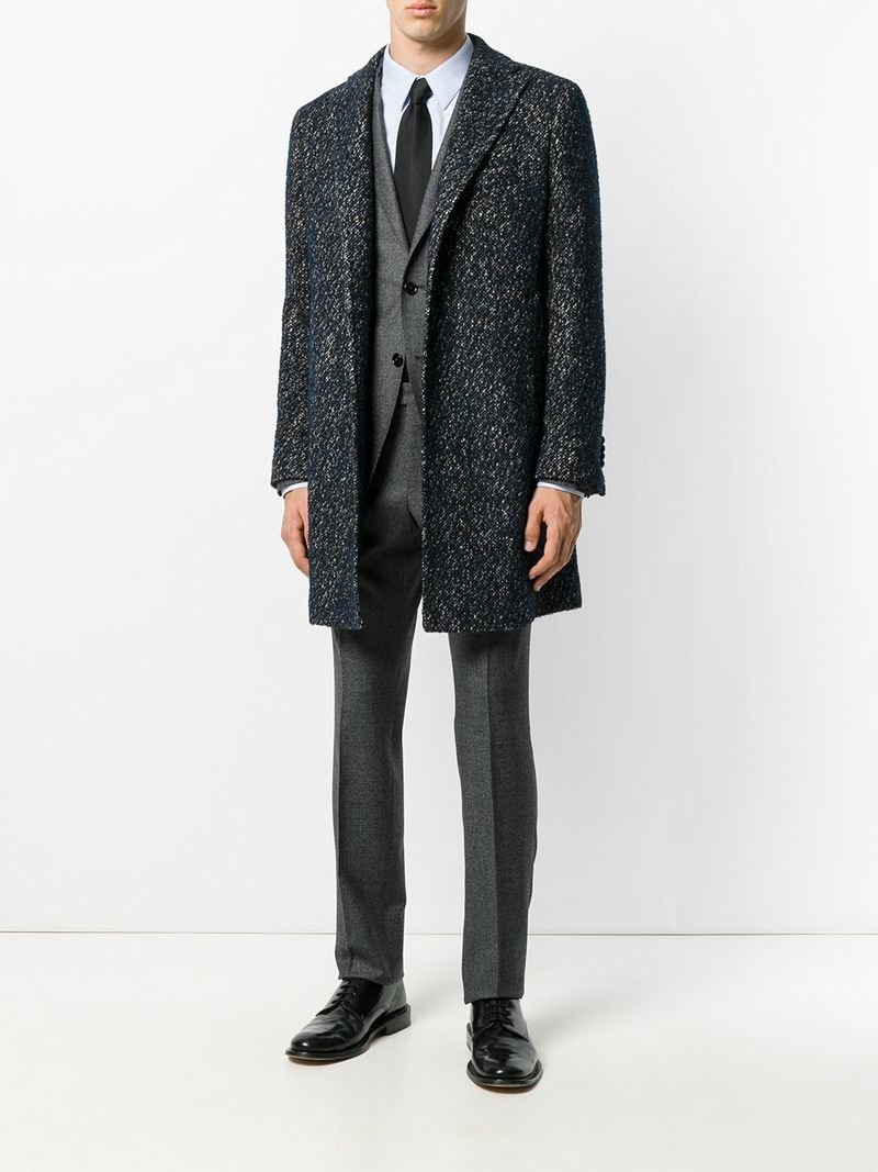 Un article polyvalent dans la garde-robe d'un homme. Ressemble beaucoup déboutonné avec l'ajout d'une écharpe élégante. Le manteau est autorisé à être joué avec toutes les choses appropriées.