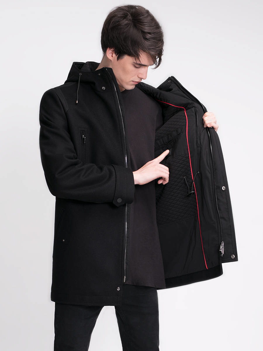 Un manteau noir est un élément indispensable dans une garde-robe masculine en raison de sa polyvalence. Il complète parfaitement n'importe quel vêtement, tout en restant impeccablement élégant. De plus, les vêtements d'extérieur en tissu noir affinent visuellement, ce qui ne fait qu'augmenter la demande de choses.