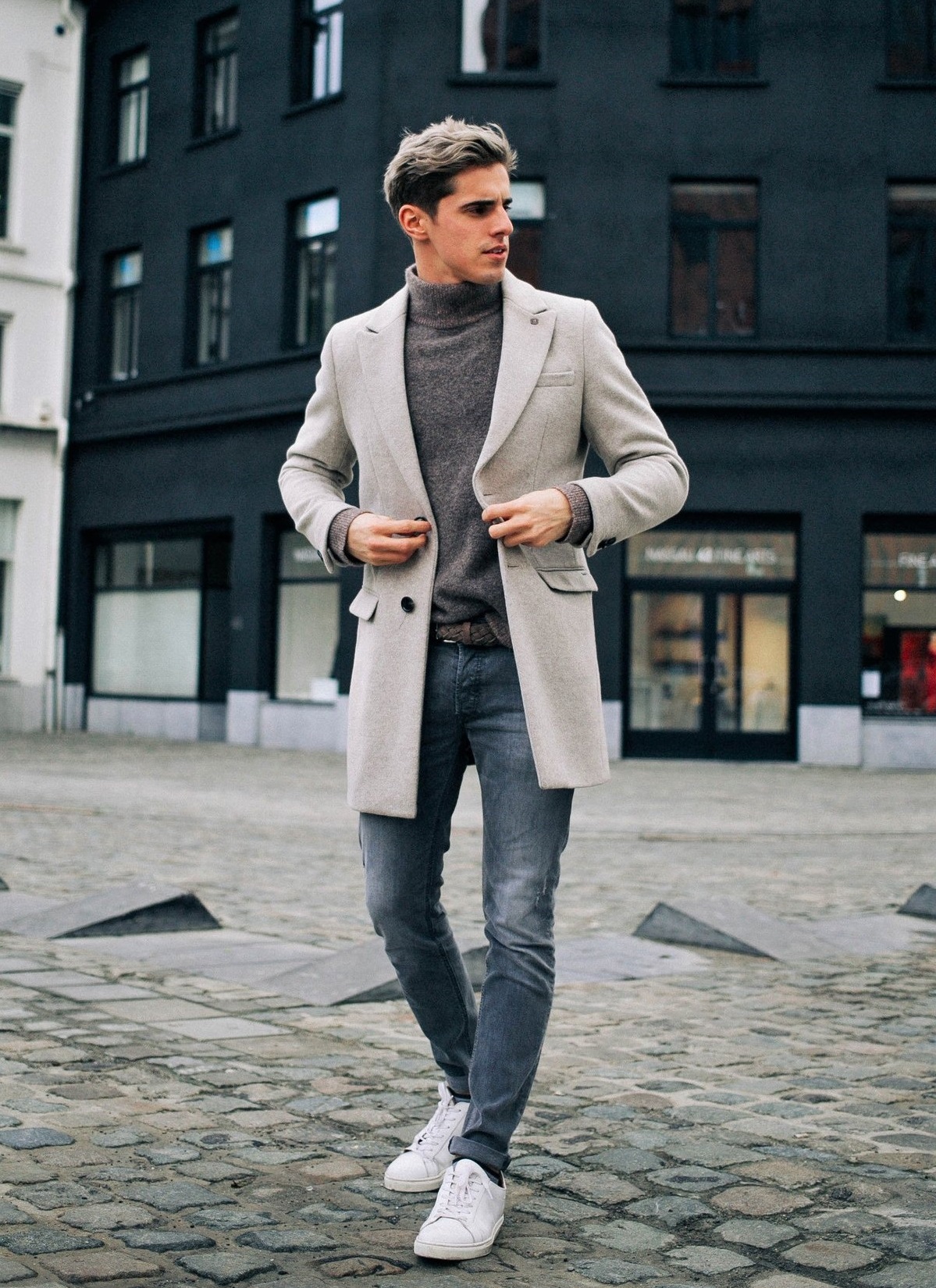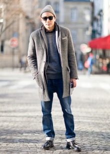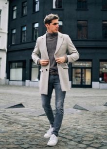 Les hommes modernes aiment beaucoup le style décontracté., dans lequel un manteau de printemps gris est magnifique. Des pantalons de survêtement noirs et des hauts ou des mocassins feront l'affaire. Une image intéressante est obtenue si vous combinez un produit gris avec des bottines, des baskets ou des chaussures basses. Des pantalons ou des jeans de coupe droite ou fuselée conviennent comme pantalons.