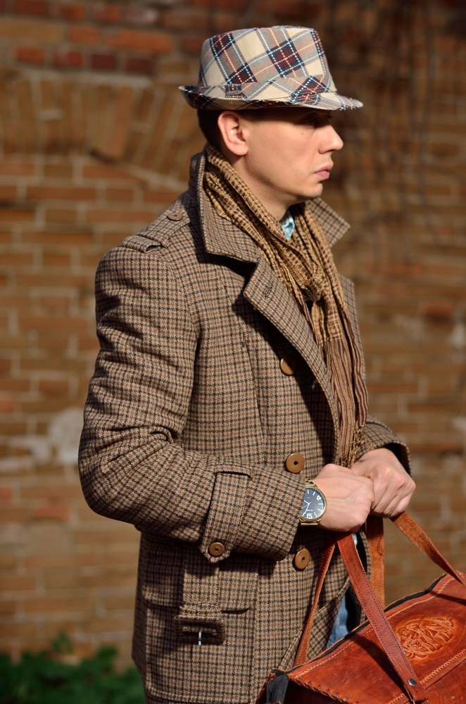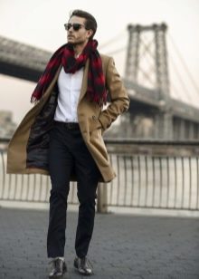 Un accessoire de mode qui a fière allure au printemps et qui se marie bien avec un manteau pour homme est une écharpe. Il protège non seulement la gorge du vent, mais ajoute encore plus de solidité à l'image. Une longue écharpe classique peut être simplement jetée autour du cou, pour plus de confort, vous pouvez faire une "boucle" hors de l'écharpe, un simple enroulement autour du cou convient également, mais n'oubliez pas de cacher les extrémités à l'intérieur.
