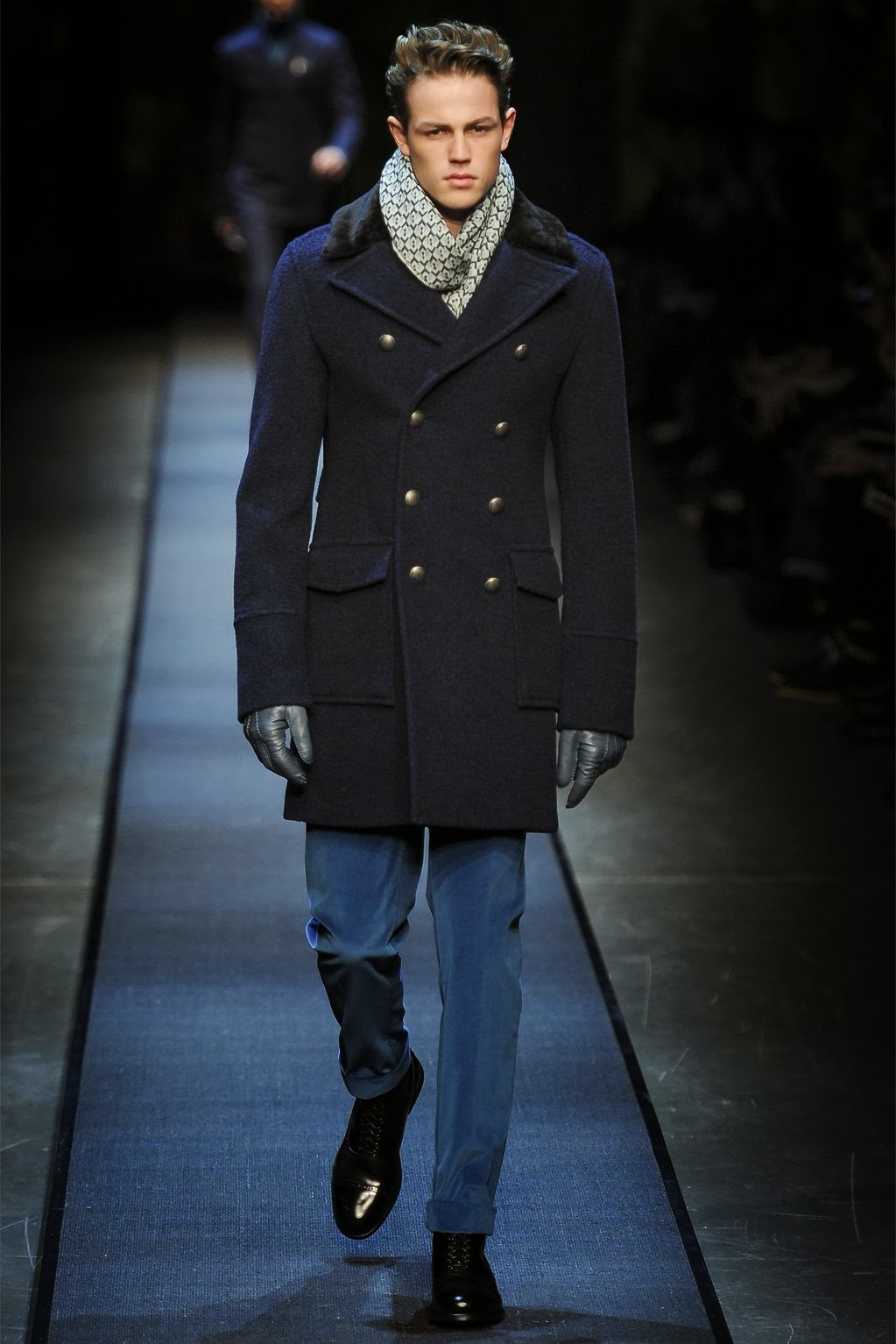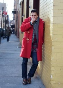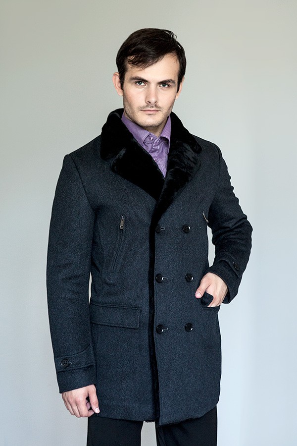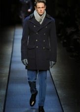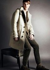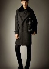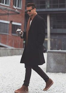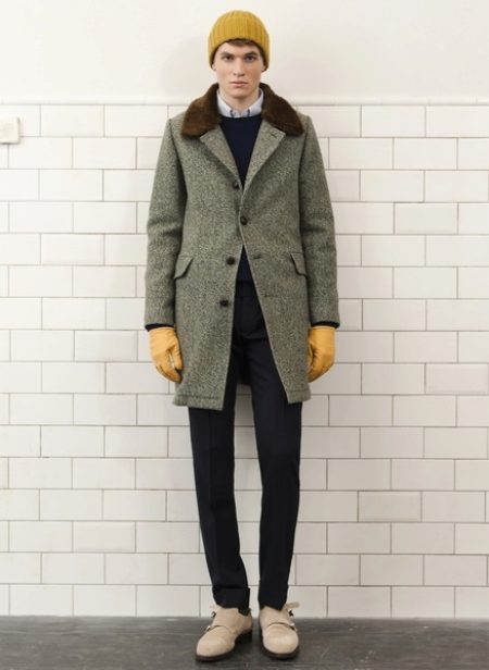 - Le col est chemise. C'est un petit col avec une coupe pointue ou arrondie. Un tel manteau a toujours l'air laconique et très sobre. Ces modèles sont généralement choisis par les hommes qui préfèrent la qualité et la bonne qualité. Avec un col simple, les foulards chauds ont fière allure, ainsi que les snoods et les écharpes aux couleurs vives. Un manteau de ce type conviendra harmonieusement à la fois à un étudiant et à un docteur en sciences aux cheveux gris. Cependant, il convient de garder à l'esprit que le col de la chemise arrondit visuellement le visage et ajoute un peu de hauteur, il est donc recommandé de l'utiliser pour les hommes de petite taille. Un modèle similaire est combiné avec un pull en grosse maille et des baskets.