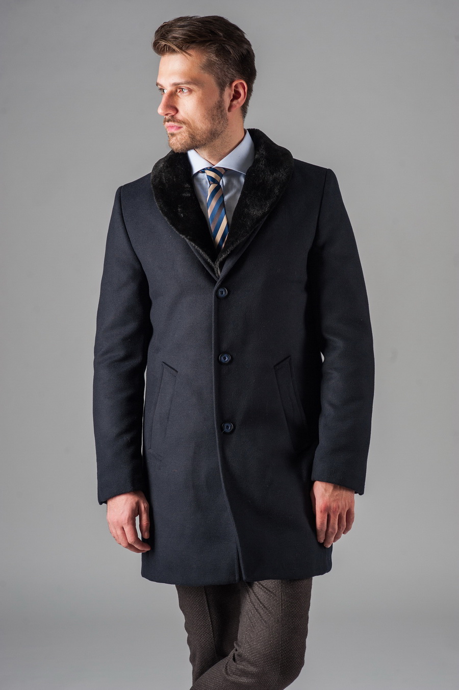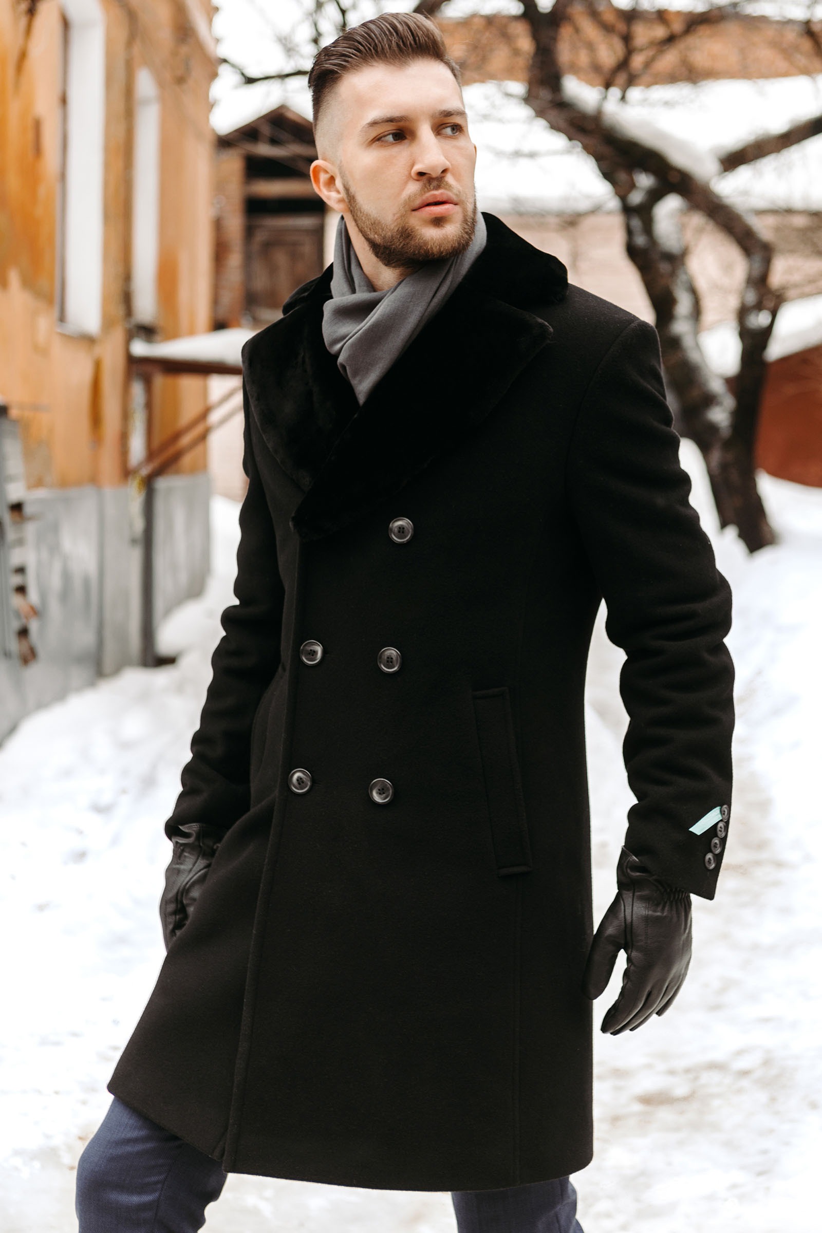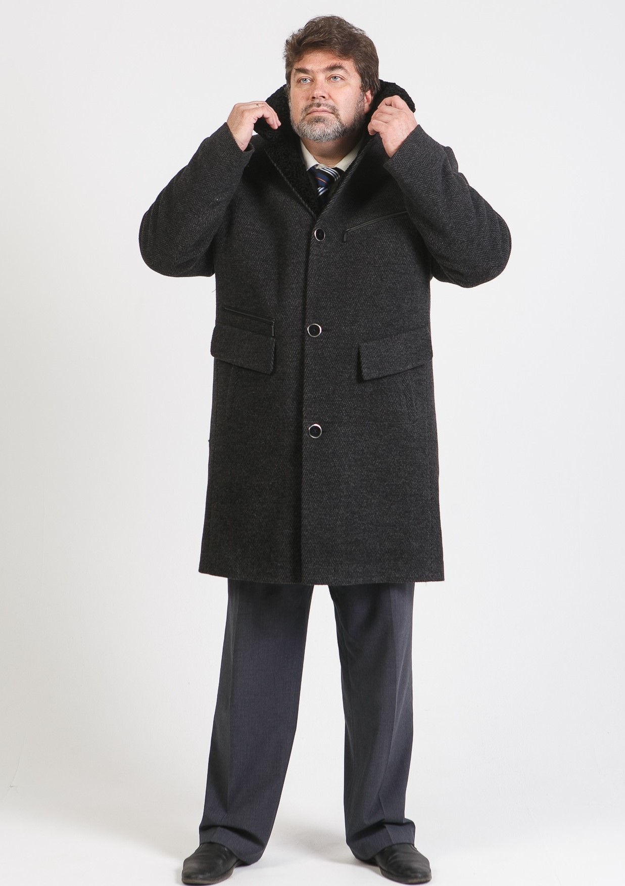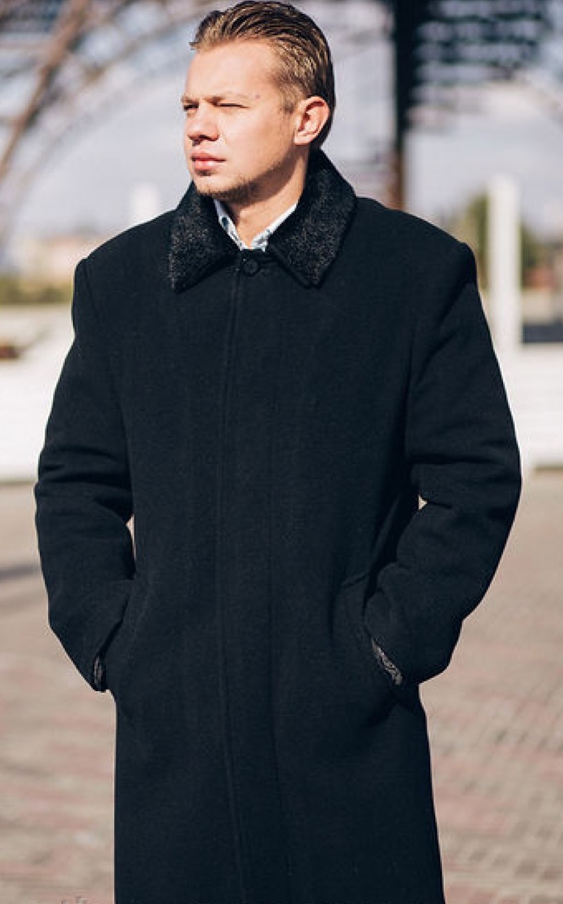 La silhouette d'un manteau d'hiver traditionnel pour hommes peut être assez ample ou ajusté. Il est souvent réalisé sur une isolation en fourrure, s'intègre harmonieusement dans un arc commercial, souligne le statut et la respectabilité de son propriétaire.