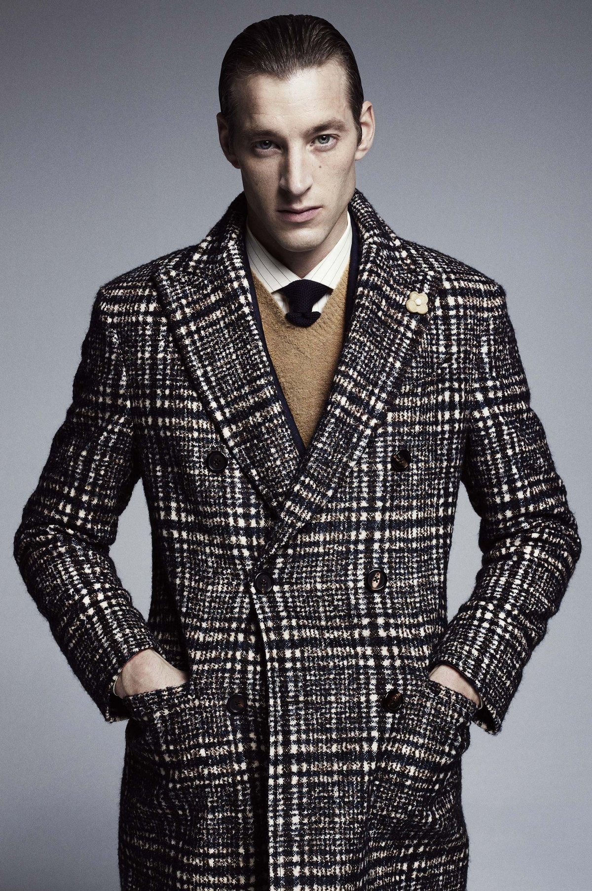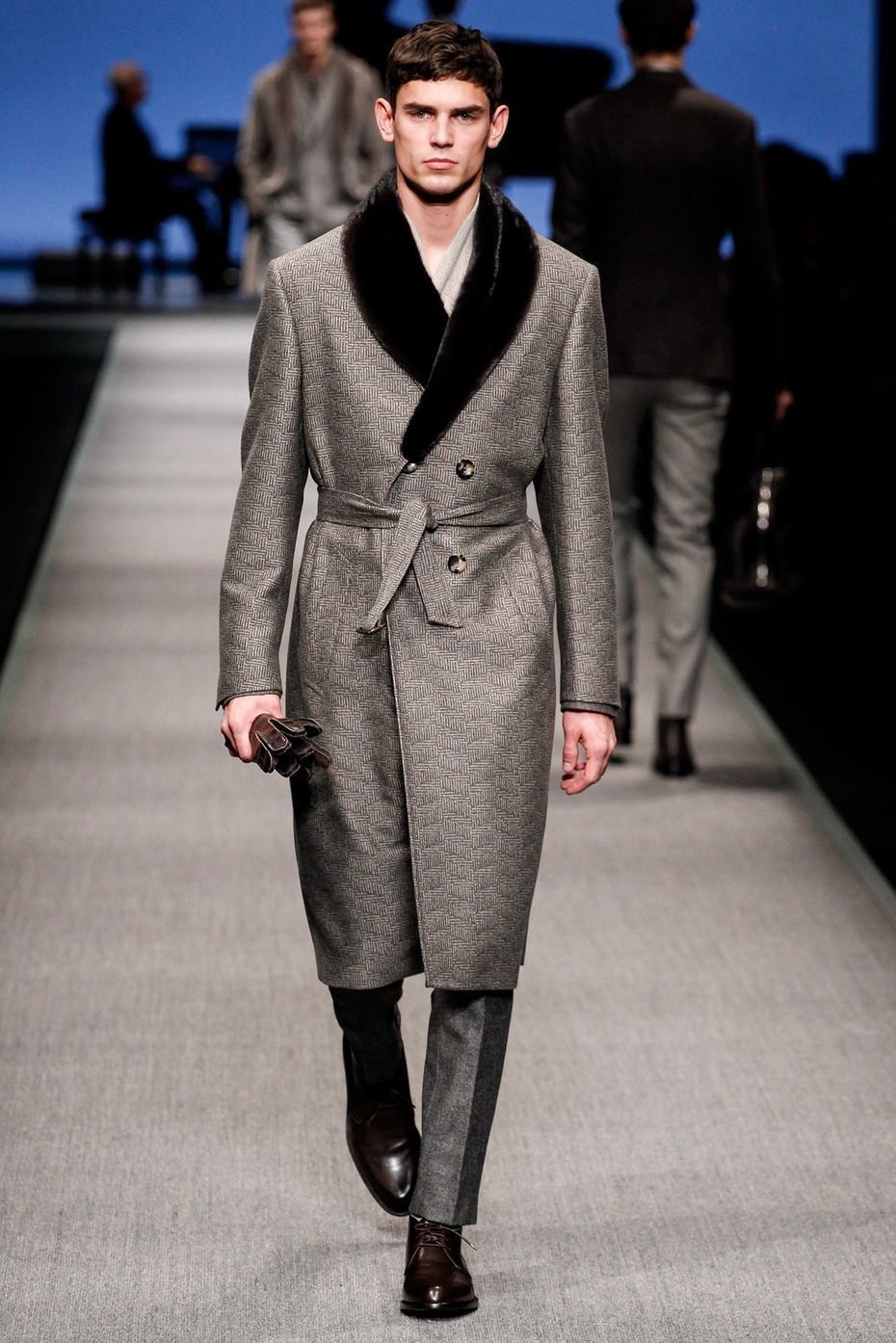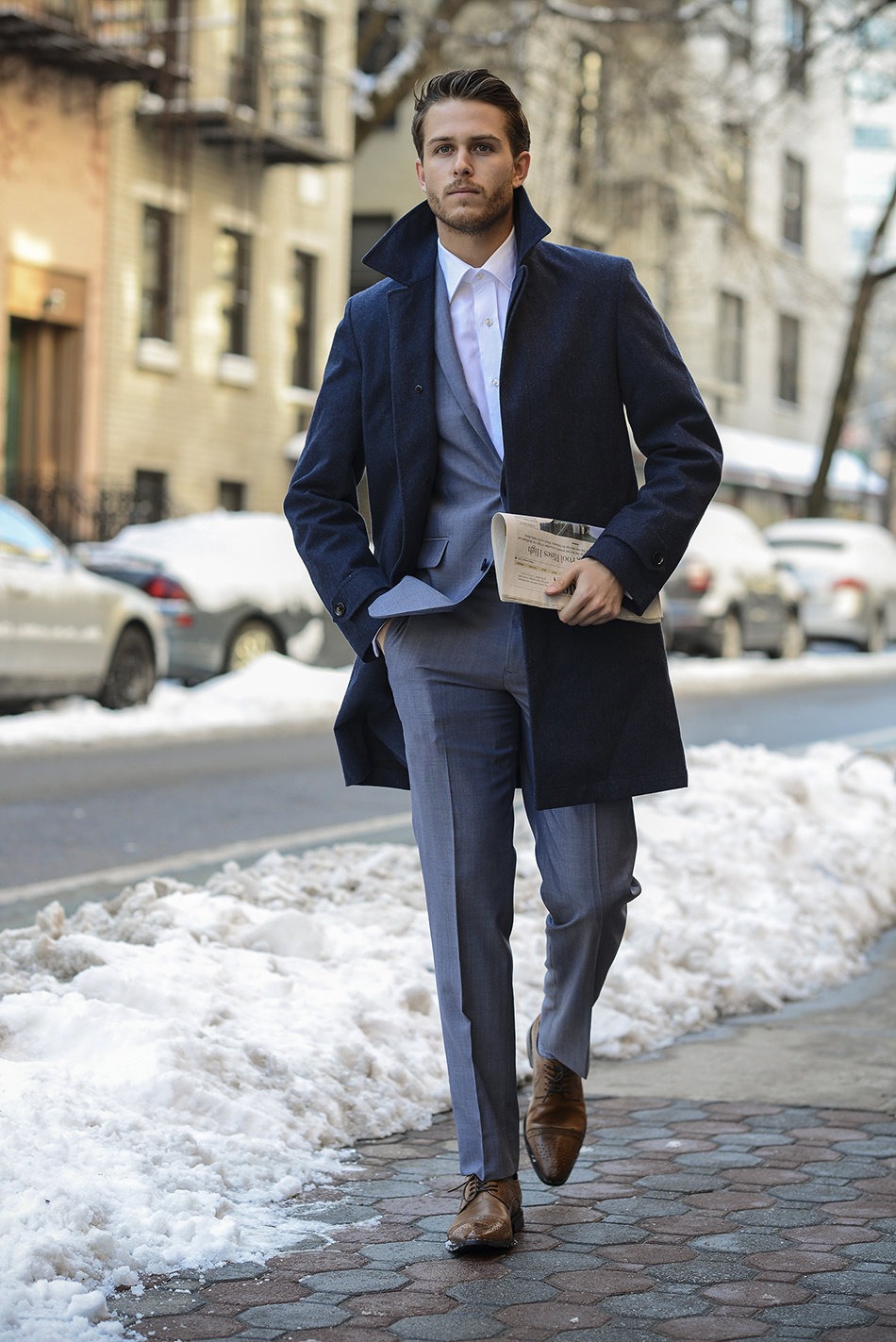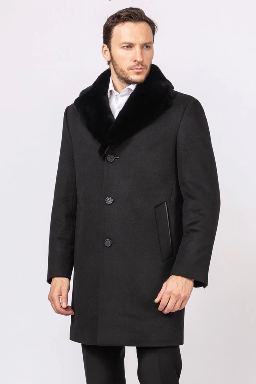 La silhouette d'un manteau d'hiver traditionnel pour hommes peut être assez ample ou ajusté. Il est souvent réalisé sur une isolation en fourrure, s'intègre harmonieusement dans un arc commercial, souligne le statut et la respectabilité de son propriétaire.