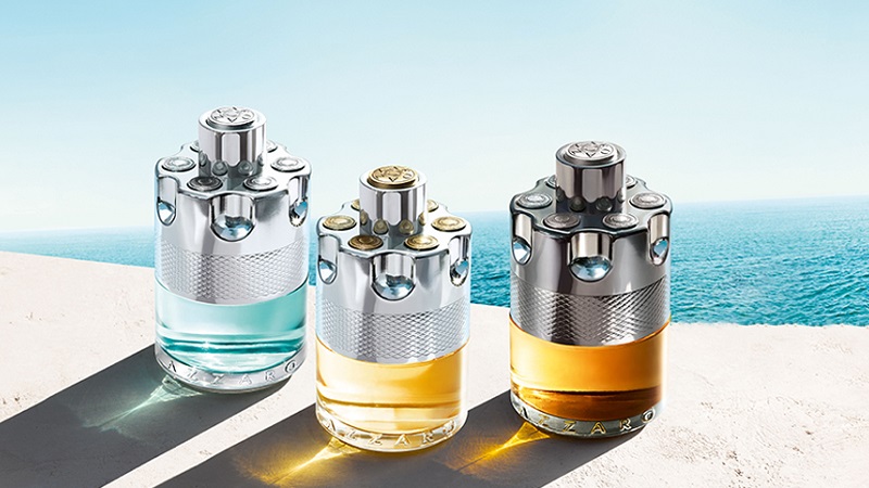 La collection Azzaro comprend également des parfums d'été pour hommes en édition limitée des collections Azzaro Pour Homme et Azzaro Chrome.... Ils sont emballés dans des bouteilles de marque représentant des lieux de villégiature, fabriquées dans des couleurs jaune ensoleillé et bleu ciel.