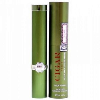 - Essence d'argent de cigare. L'Eau de Toilette en flacon compact de 75 ml a été lancée pour la première fois sur le marché en 2013. Le parfum appartient au groupe des agrumes fougères, placés dans un emballage en argent en forme de cigare. La composition est à base de cèdre, de vétiver et de musc avec l'ajout de mousse, de patchouli et d'épices, généreusement parfumée de notes de mandarine, citron, orange et pomelo. C'est un parfum juteux et frais avec des tons masculins accentués, parfait pour la saison printemps-été.
