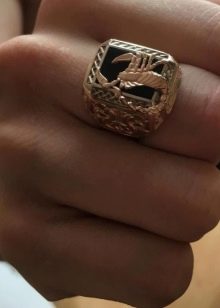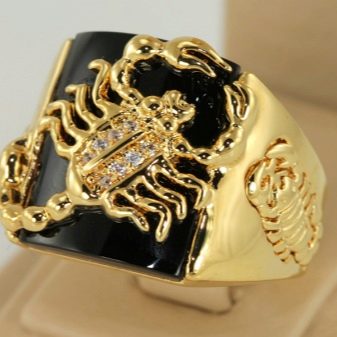 Par exemple, les bagues avec des armoiries démontrent non seulement la position patriotique du propriétaire, mais sont également capables de le protéger de la négativité. Les bagues en or inhabituelles avec un scorpion méritent également une attention particulière, elles sont considérées comme un symbole de noblesse.