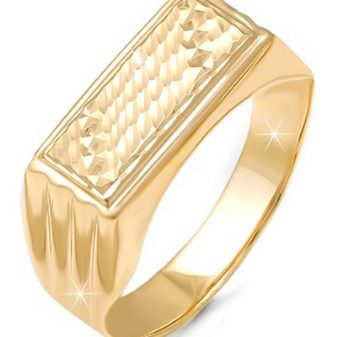 - Rectangulaire... Ce sont des phoques à la mode. Il est recommandé de les acheter pour les jeunes hommes, car de tels bijoux ne semblent pas solides sur les personnes âgées.
