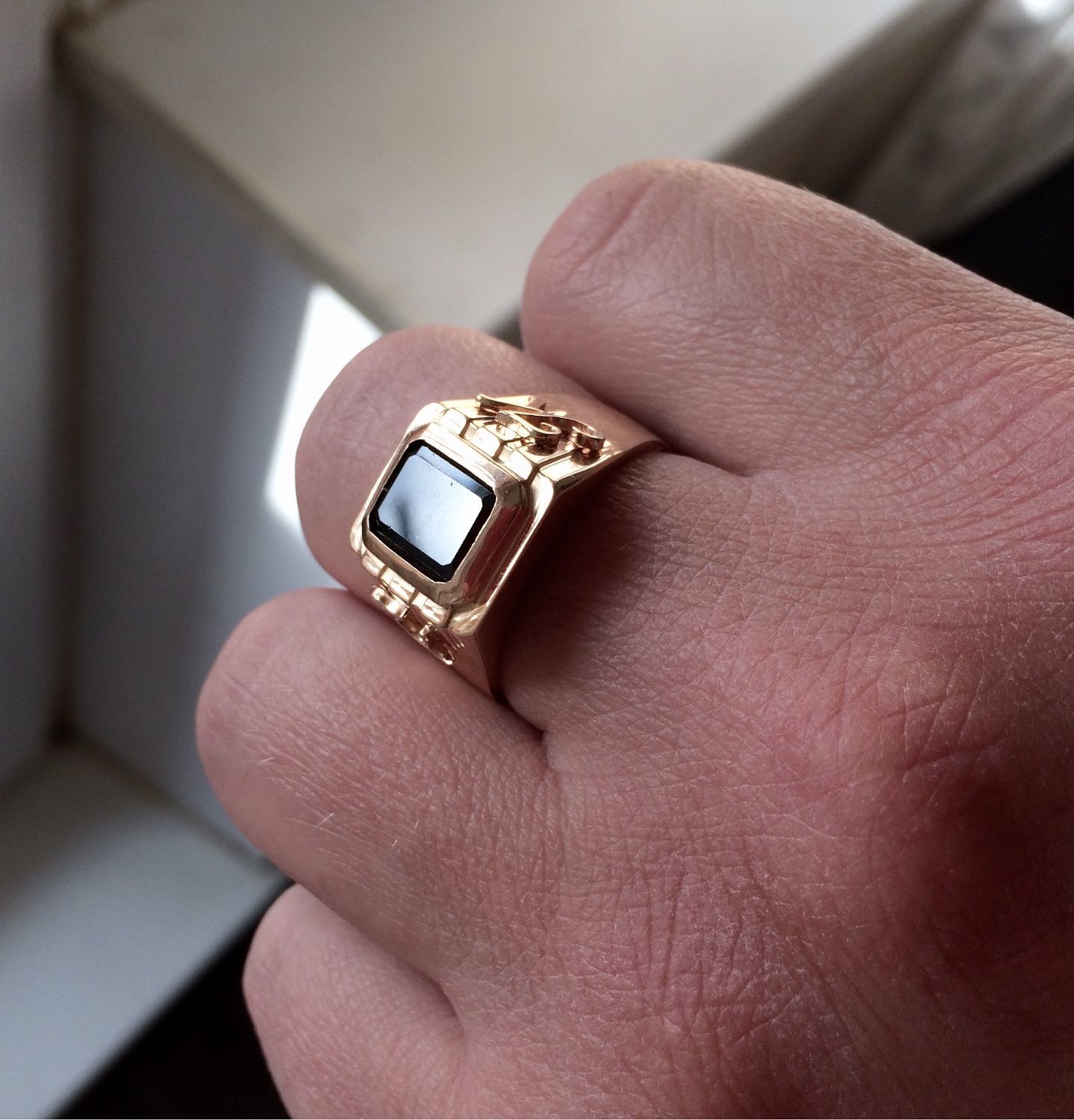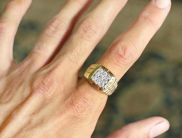 - Carré... C'est une option classique qui est idéale pour tous les hommes, quels que soient leur âge et leur statut. Les chevalières carrées sont magnifiques sur les petites et les grandes mains.