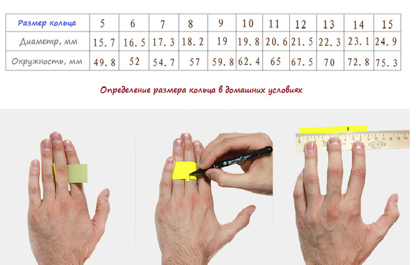 Il est à noter que les doigts des deux mains peuvent différer de diamètre, donc afin de ne pas acheter une bague trop grande ou trop petite, il est nécessaire de mesurer la circonférence du doigt sur lequel vous prévoyez de toujours porter le bijou.