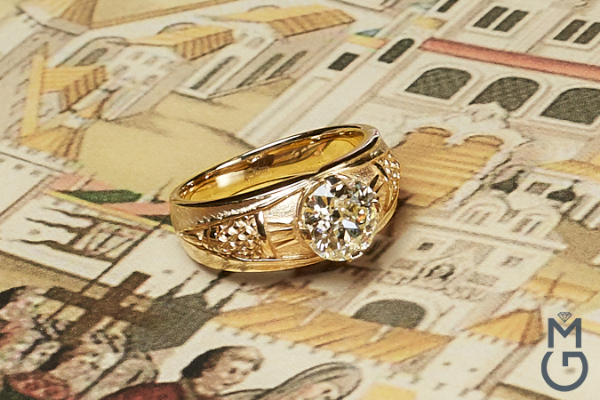 Pour souligner leur statut favorablement, il est préférable que les hommes achètent des modèles avec un diamant de taille stricte.