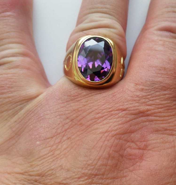 - Améthyste... Cette pierre violette est capable de donner sérénité et tranquillité. Si auparavant, seuls les prêtres portaient des bagues avec de l'améthyste, aujourd'hui, ces bijoux sont choisis par les amateurs de choquant.