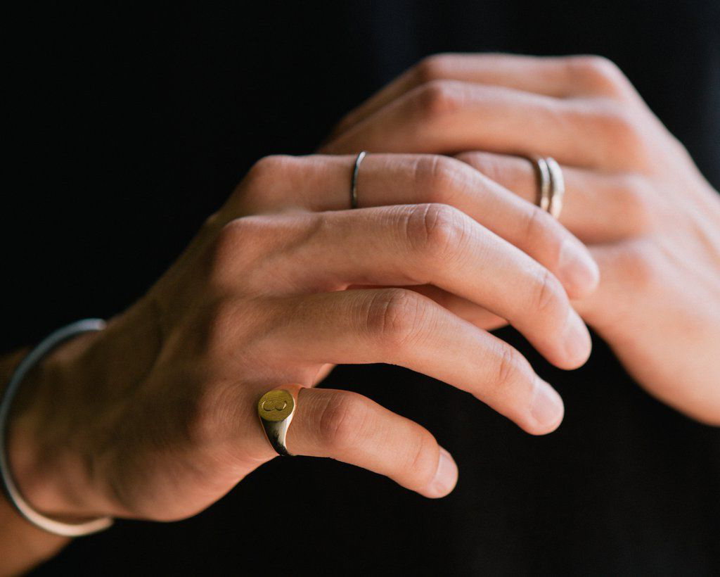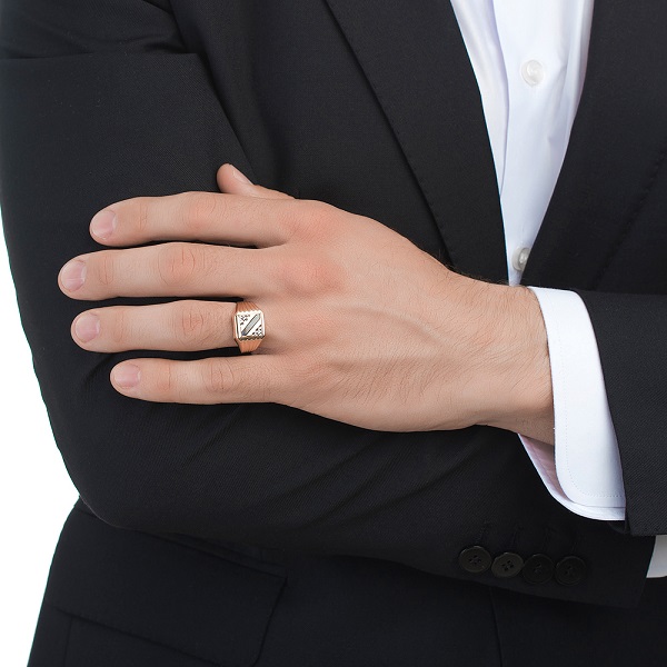 La bague masculine peut être portée à la fois au petit doigt et au majeur, tandis que il est important de s'assurer que tous les bijoux sur vos mains (montres, bracelets) sont en métal de la même couleur.