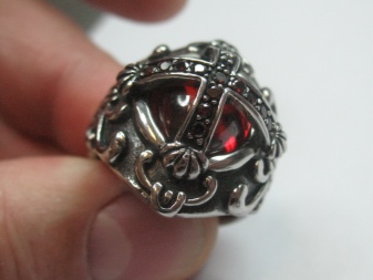 Les modèles diffèrent par l'originalité, orné d'une tête de loup ou symbolisant un dragon. Les bagues avec une plate-forme figurée sont plus souvent choisies par les jeunes.