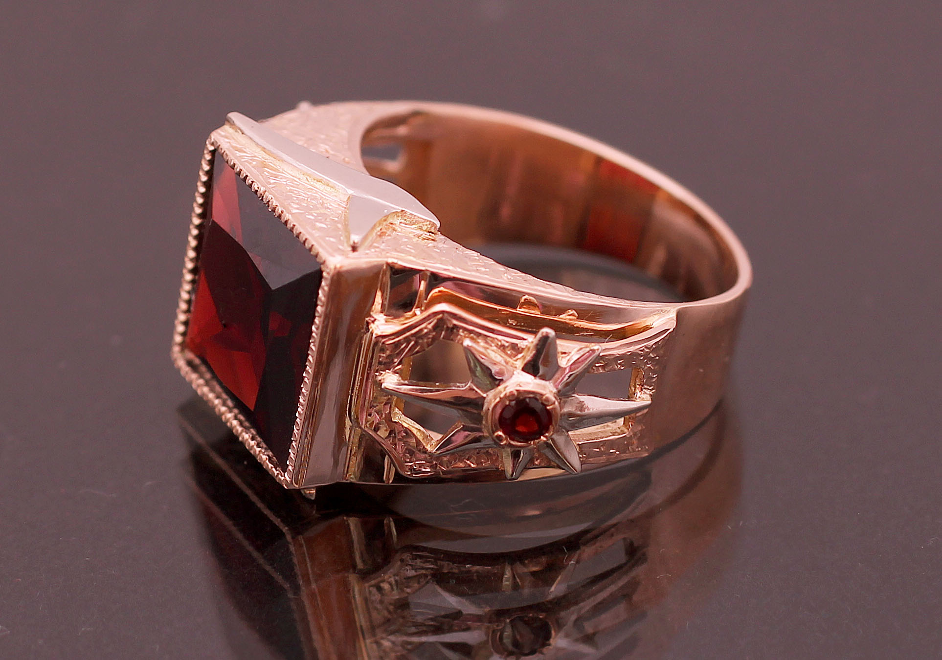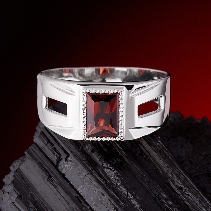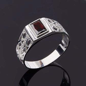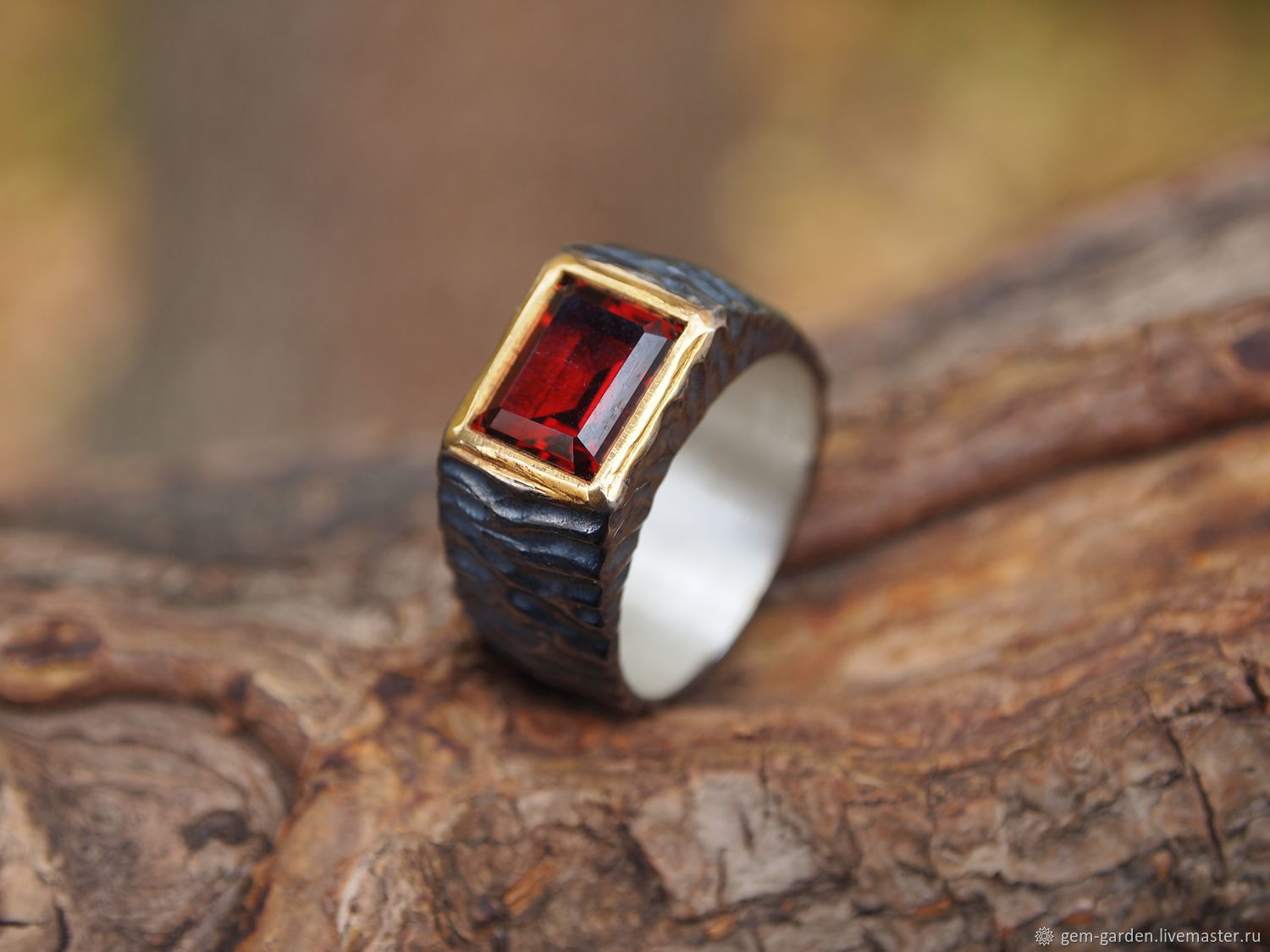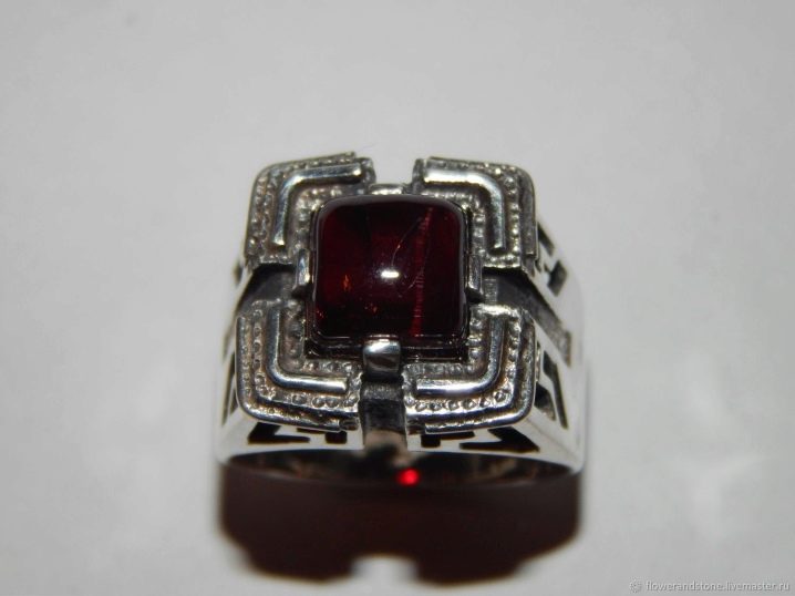 Bague en or ou en argent avec grenat peut être acheté comme cadeau à votre mari, amant, ami ou frère. Un tel cadeau symbolise le respect.