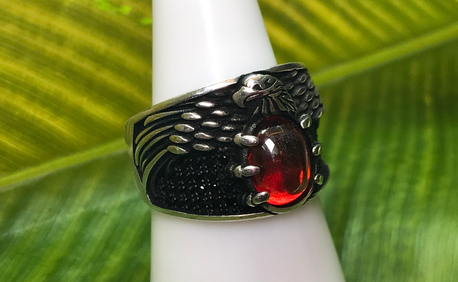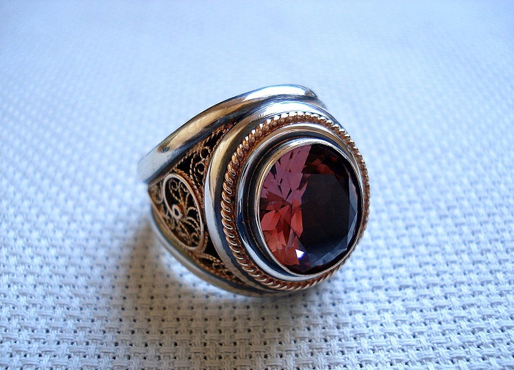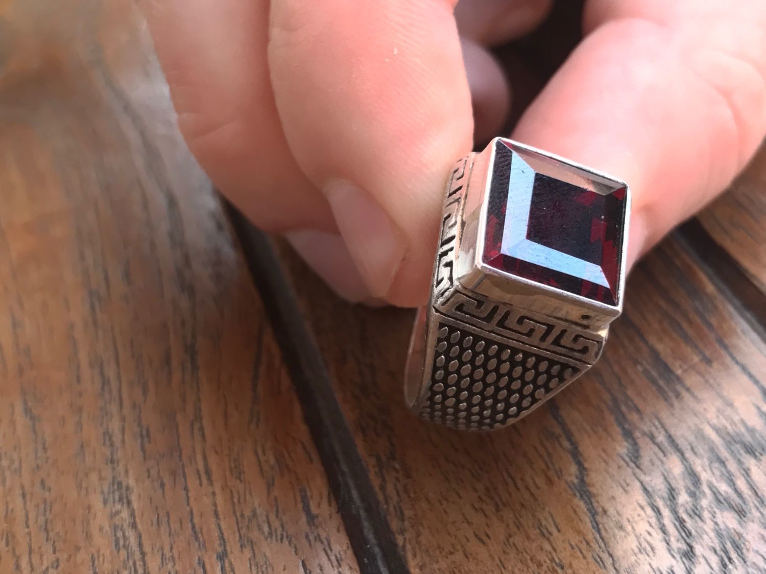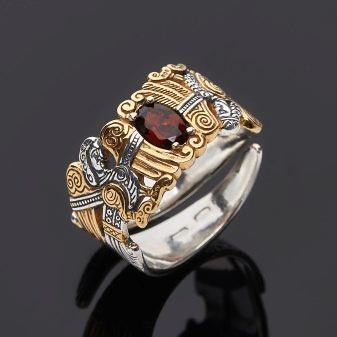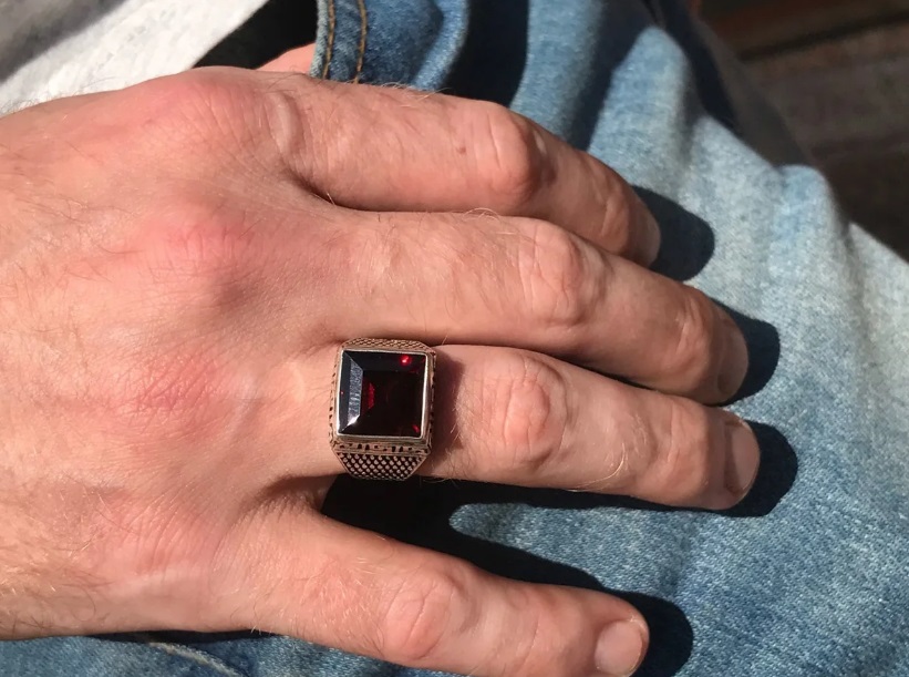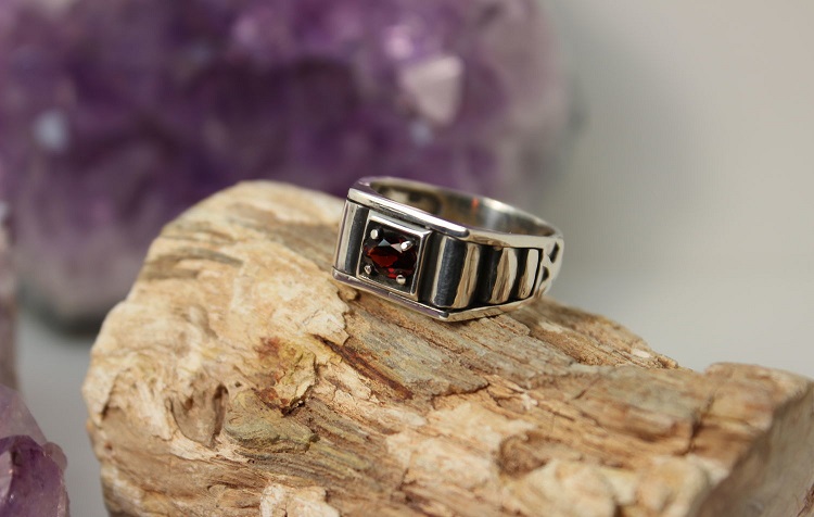 Bague en or ou en argent avec grenat peut être acheté comme cadeau à votre mari, amant, ami ou frère. Un tel cadeau symbolise le respect.