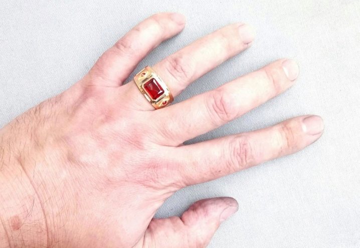 Sceausont généralement en métaux précieux. Pour des hommes chevalières avec grenat en or look cher et prestigieux. Il n'y a pas de règles strictes régissant le doigt sur lequel porter des bijoux, mais l'écrasante majorité du sexe fort préfère porter l'accessoire sur son annulaire ou son petit doigt.