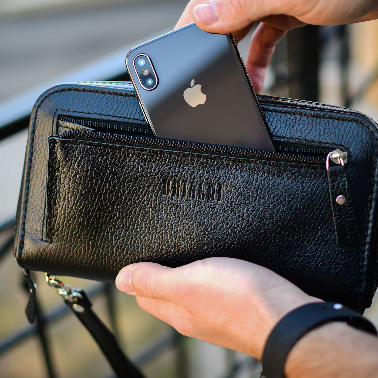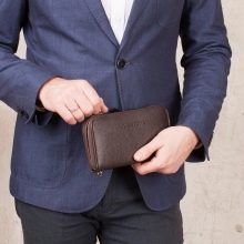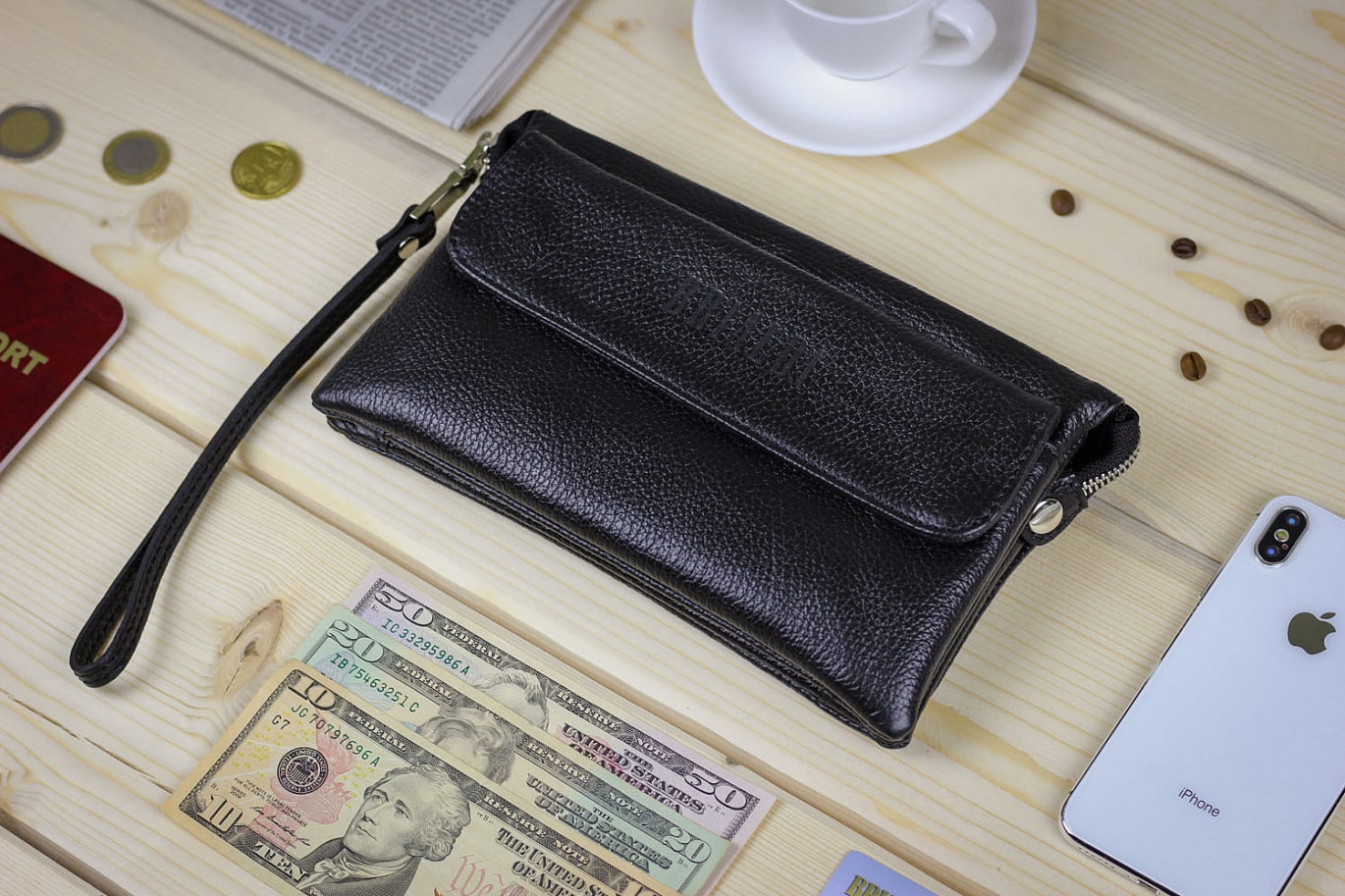 - Embrayage - un modèle fonctionnel qui a une forme longue et spacieuse et peut être utilisé pour stocker de l'argent, des documents, des clés et un téléphone. Caractéristiques - la présence d'une dragonne spéciale, de fermetures à glissière, de forme rectangulaire, en cuir grainé de haute qualité.