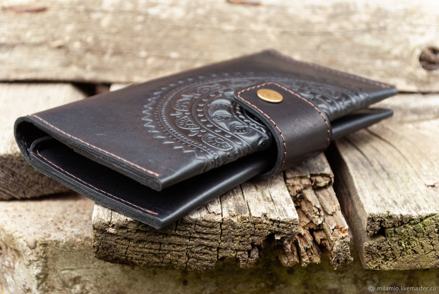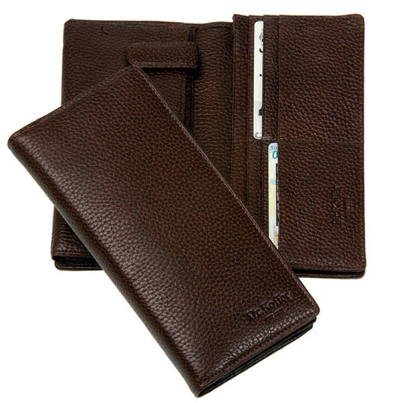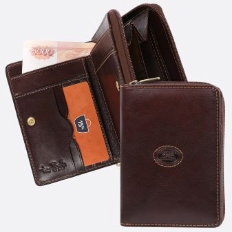 Les portefeuilles en cuir peuvent être petits ou grands, mais toujours plats. La plupart des modèles se composent non seulement de départements pour le papier-monnaie et le change, mais aussi pour les cartes bancaires modernes. L'inconvénient est le manque de compartiments pour ranger les cartes de visite, les cartes bonus et autres bagatelles.