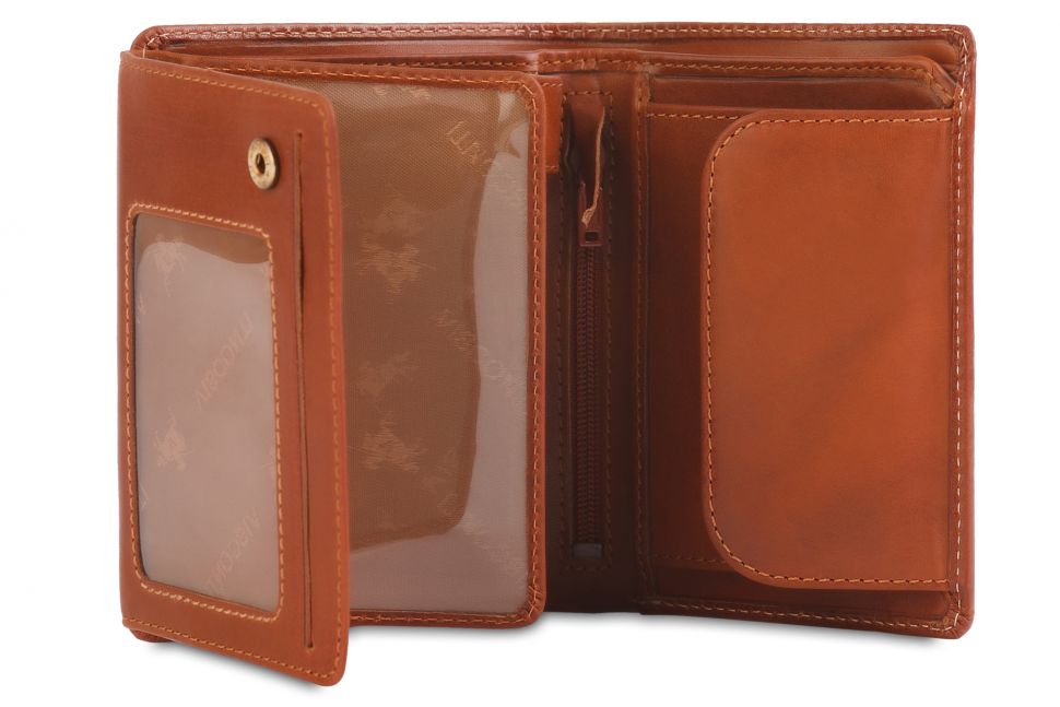 - Petit - un produit compact qui ressemble à un livre de fermeture et s'appelle un pliant.Dans la plupart des cas, un portefeuille se ferme avec un bouton, mais les très petits portefeuilles peuvent être fermés avec une fermeture éclair ou un petit rabat. L'inconvénient est l'impossibilité de placer une grosse somme d'argent.
