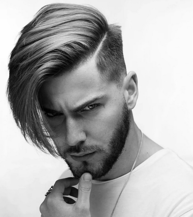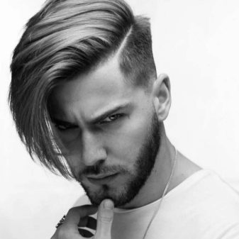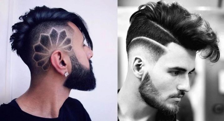 Quant à la frange allongée asymétrique, cette option est pertinente pour les jeunes maigres et grands. De plus, une mèche élégante aidera à masquer les imperfections du visage. Divers motifs à l'arrière de la tête peuvent ajouter de l'espièglerie et de la légèreté à un look masculin. Les formes géométriques sont très populaires, ainsi que l'image d'un serpent ou d'un lézard.