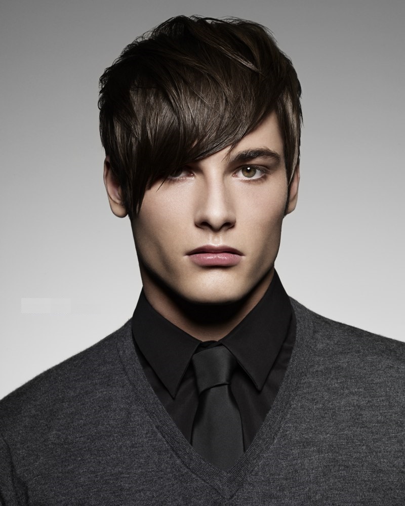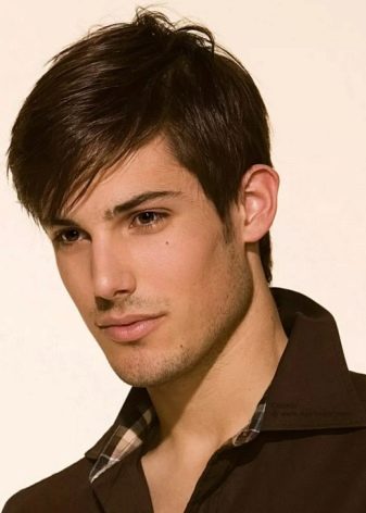 - Les franges asymétriques allongées conviennent aux personnes aux cheveux épais et luxuriants et aux traits fins. Les gars potelés sont mieux d'éviter cette option.