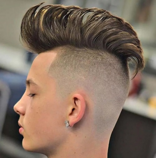 Cette coupe de cheveux est souvent complétée par des tempes rasées ou une peinture originale (par exemple, "sous un pochoir").