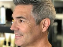 Les cheveux gris sont un signe inévitable de l'âge. Pour de nombreux hommes, les brins d'argent apportent une touche aristocratique au style et à l'image globale. Les mèches peuvent aider à mettre en valeur le ton dramatique des cheveux gris et à masquer la décoloration des mèches individuelles. La densité des cheveux gris est différente de la densité des cheveux colorés, ils sont plus denses, donc plus difficiles à teindre.