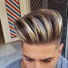 L'époque des coupes de cheveux pour hommes modestes pour une machine à écrire est révolue depuis longtemps. À son arrivée au salon, un homme élégant et moderne peut commander n'importe quelle coiffure de son choix - une séparation de gentleman classique, un haut texturé avec des transitions de couleurs nettes, un hérisson avec des pointes blanches et bien d'autres. Cela vaut la peine de considérer que les coupes de cheveux pour les cheveux longs, ainsi que la longueur moyenne sont considérées comme les plus préférables pour la mise en évidence.