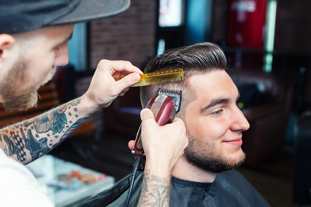 Ils démarrent le mouvement avec la machine par l'arrière de la tête ; dans les coiffures classiques, les poils à l'arrière de la tête sont laissés assez courts.