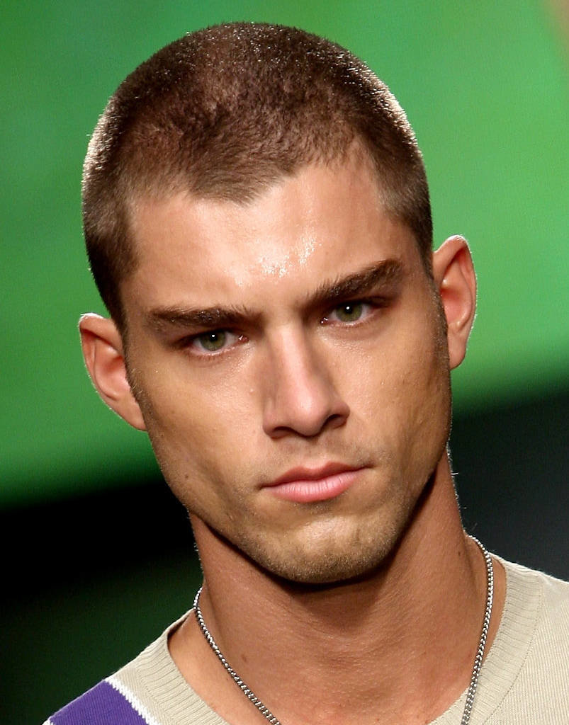 Cette coupe de cheveux virile était autrefois très populaire. Dans le passé, cela impliquait de raser complètement les cheveux de la tête. Aujourd'hui, elle est plus souvent réalisée avec une machine avec une buse minimale.
