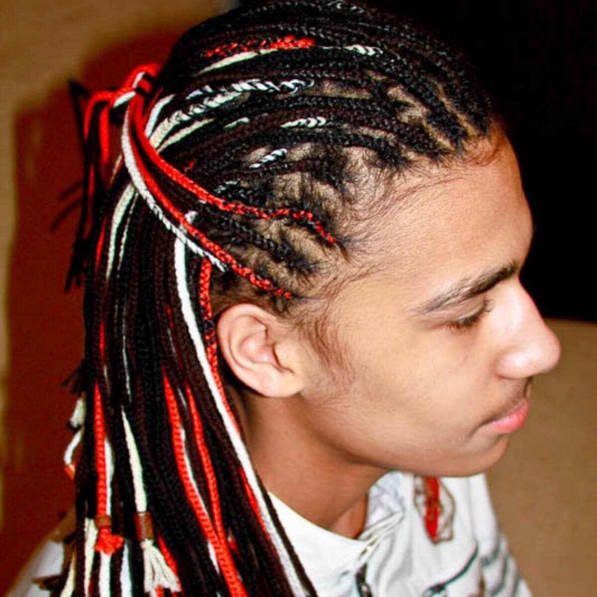 Et aussi les tresses africaines sont décorées avec toutes sortes de dentelles, rubans et fils brillants. Certains hommes peignent un tissage partiel avec du vernis ou des crayons.