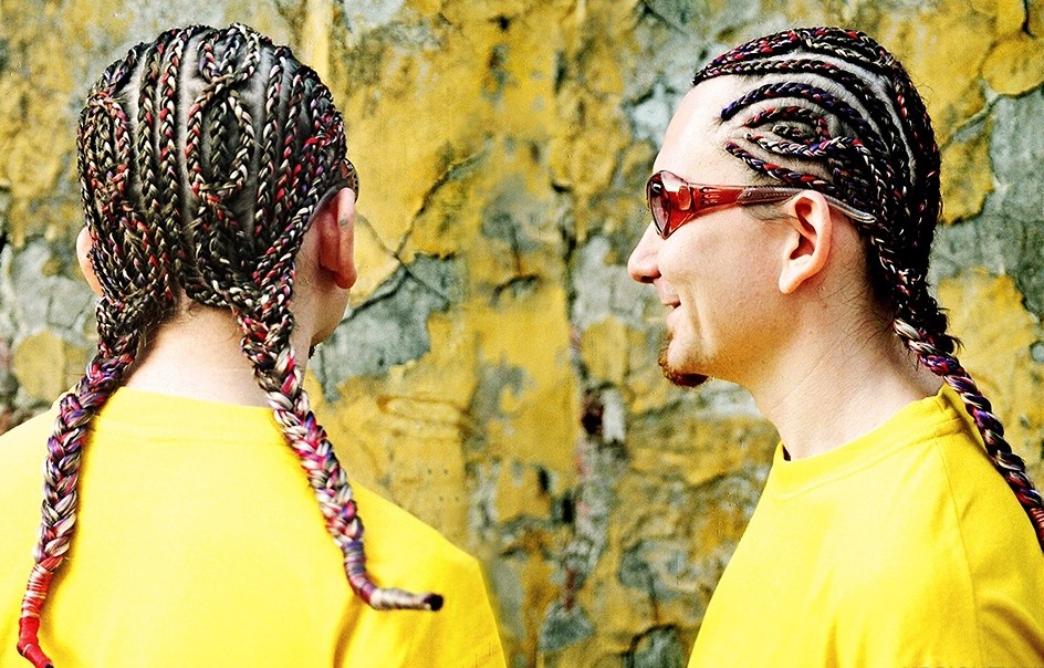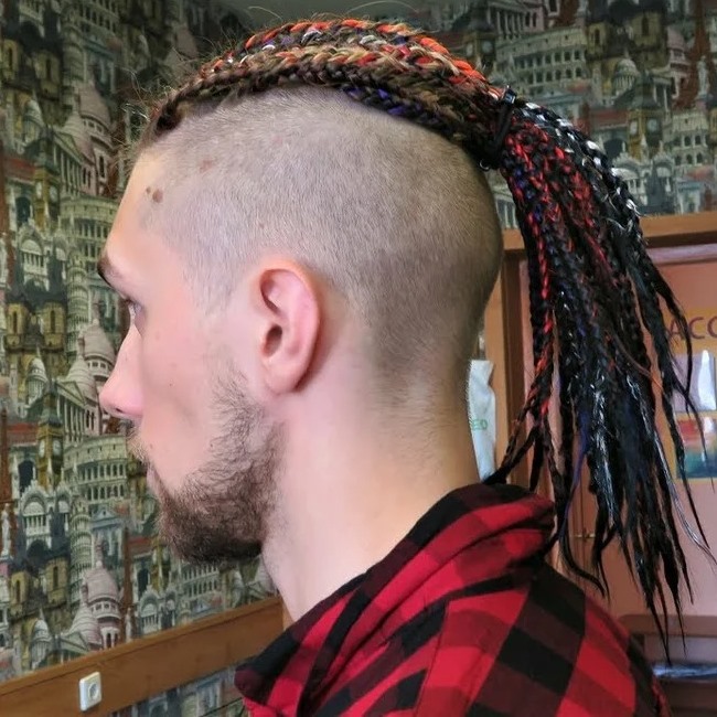 Les gars courageux complètent le tissage original avec des bandes élastiques brillantes et des foulards. Les brins partiellement colorés ne sont pas moins impressionnants.