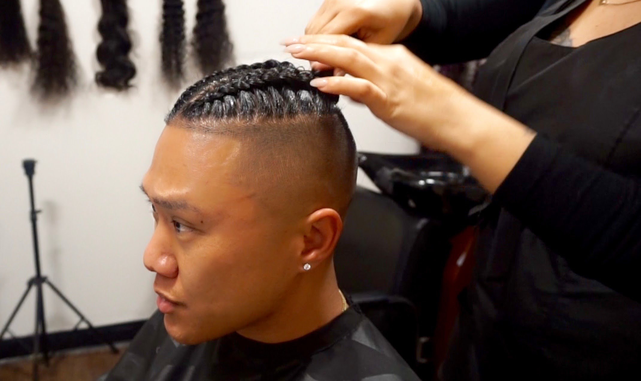 Une leçon sur le tissage de tresses africaines dans la vidéo.