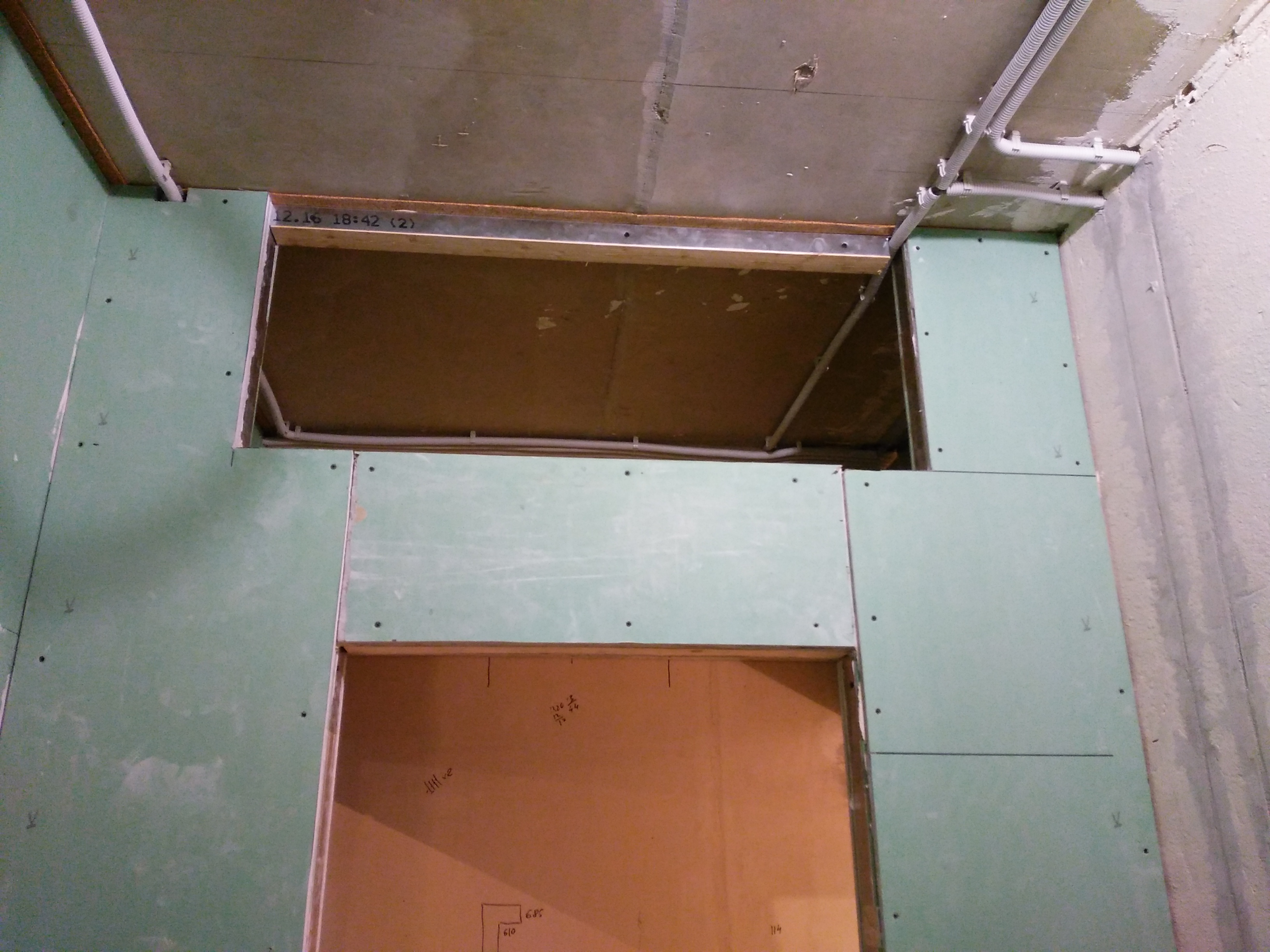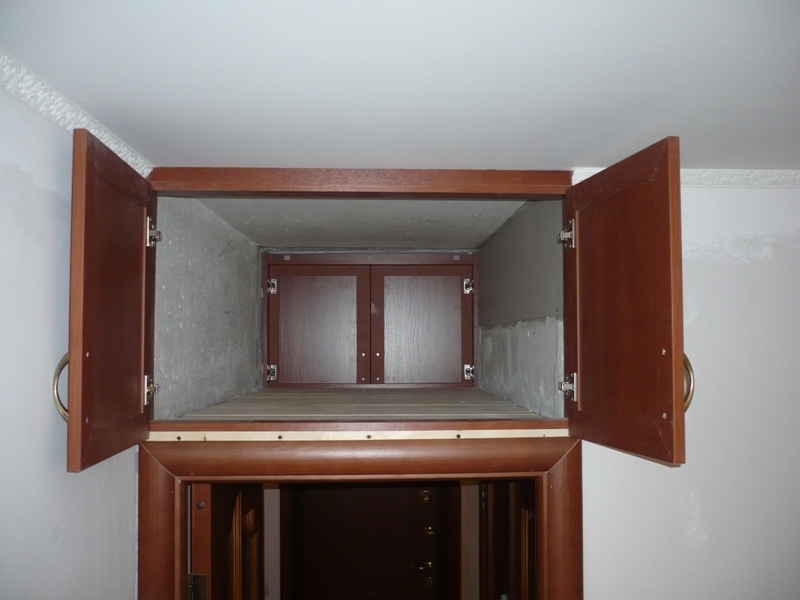 Un cadre de la future structure est assemblé à partir d'un profilé métallique pour la fixation au mur, puis le fond (en plaques de plâtre) et la façade sont fixés (le matériau et la couleur sont choisis pour correspondre au mobilier déjà présent dans le couloir). La porte est soit articulée vers le haut, soit de manière à s'ouvrir dans une direction pratique.