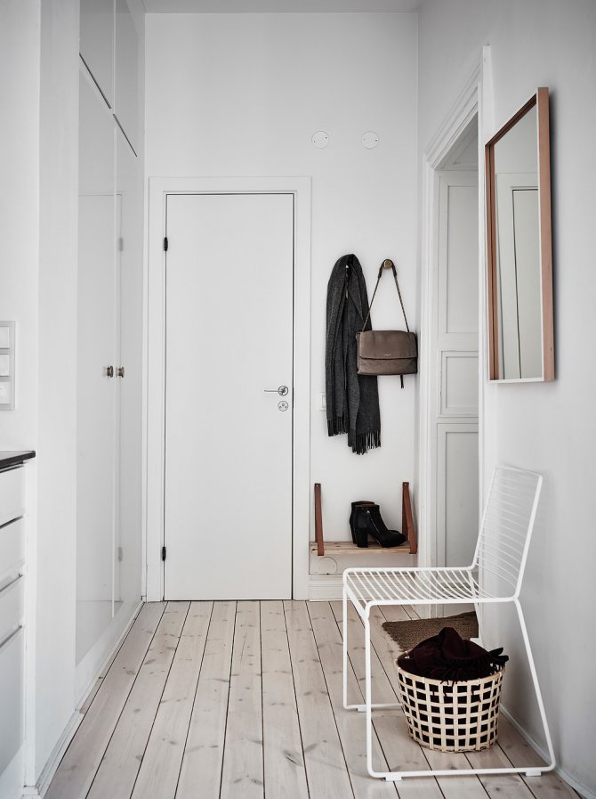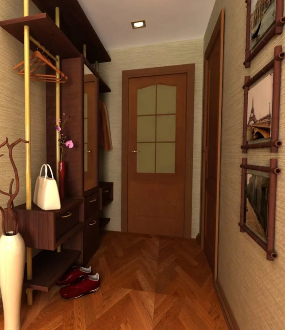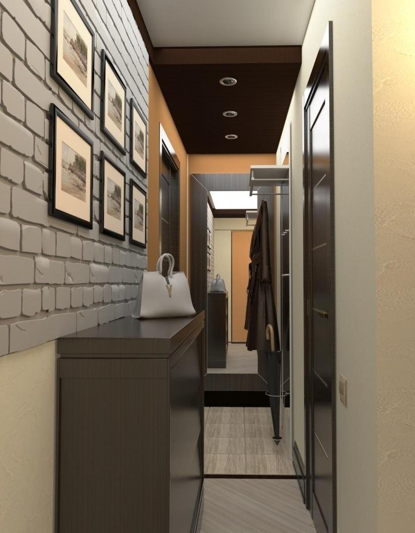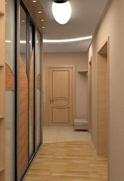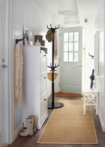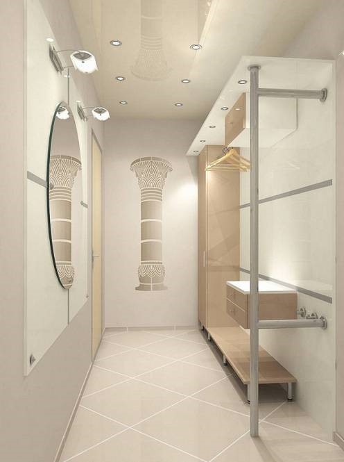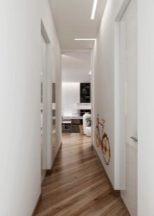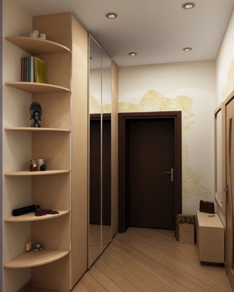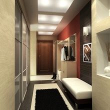 Avec une étroitesse importante, le couloir doit être aménagé de manière rationnelle, tout en maintenant la distance optimale entre les meubles et le mur.