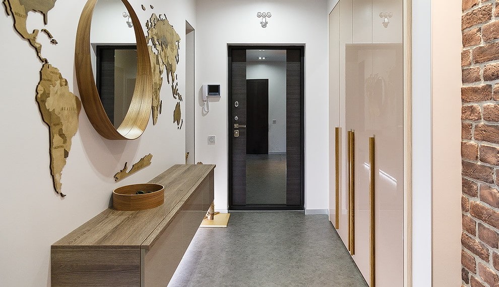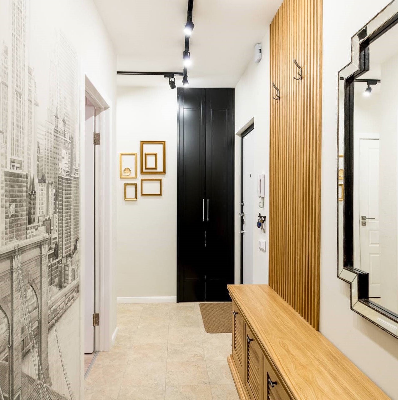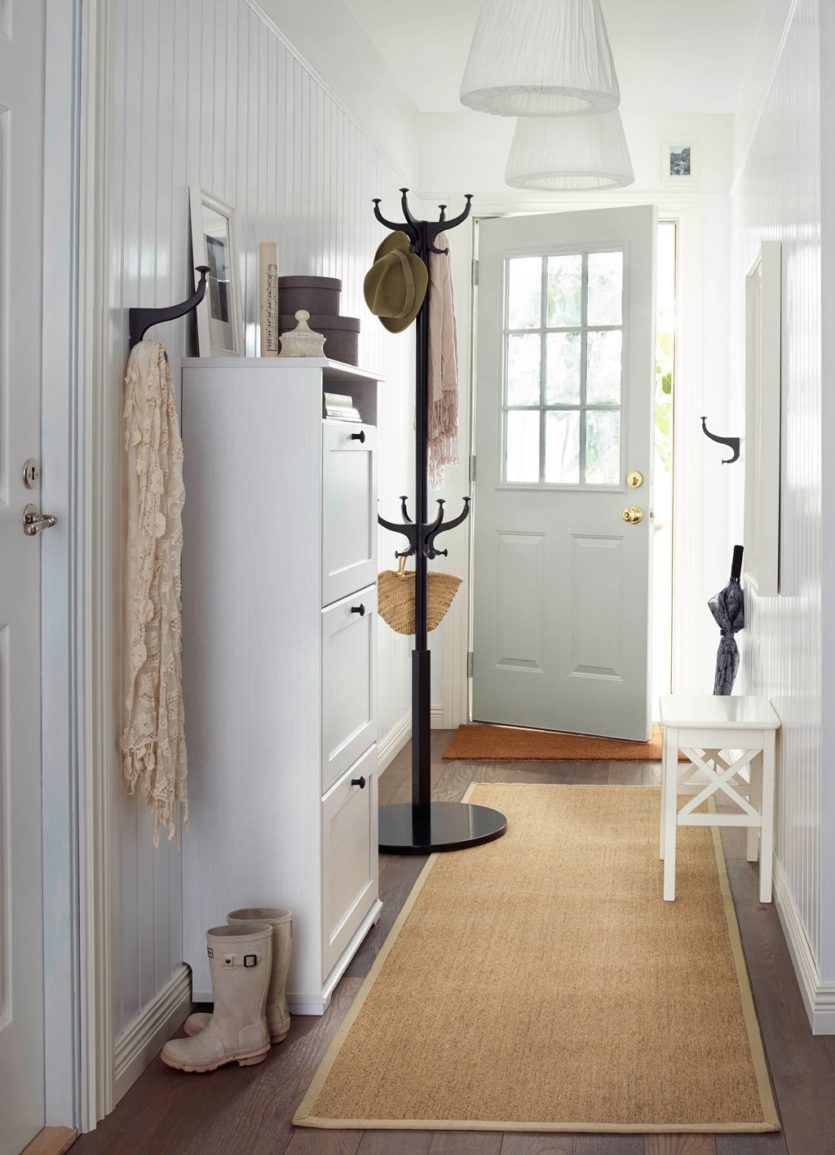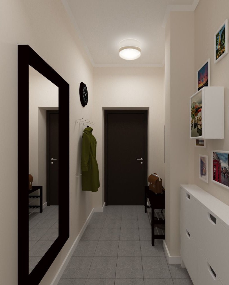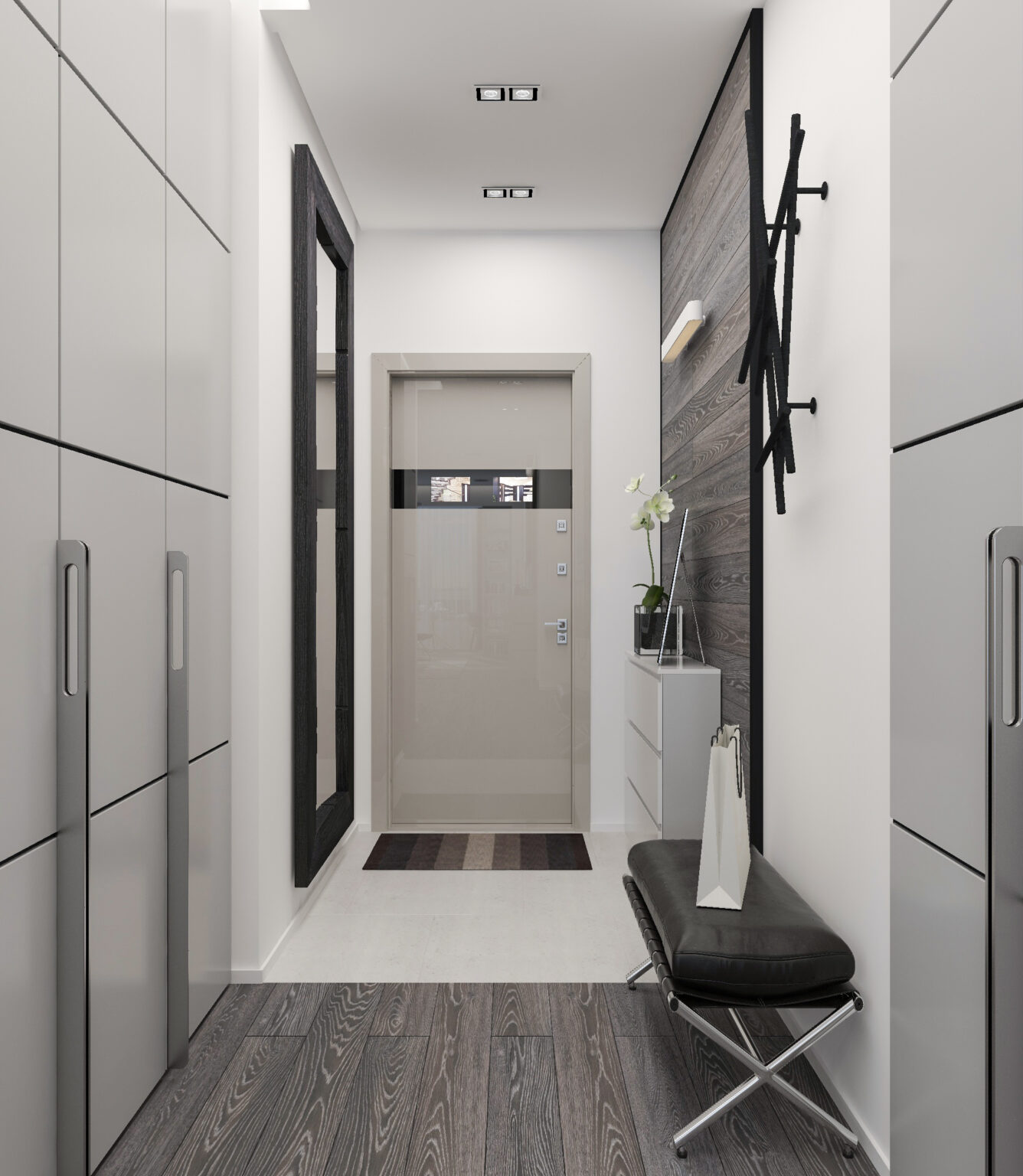 Avec une étroitesse importante, le couloir doit être aménagé de manière rationnelle, tout en maintenant la distance optimale entre les meubles et le mur.