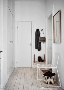 Aménager confortablement un petit couloir de manière minimaliste, c'est choisir et installer correctement un certain nombre d'éléments de mobilier typiques : une armoire, un cintre ouvert ou des crochets pour les objets du quotidien, des accessoires pour ranger les chaussures, un banc, une table de chevet pour plier de petites choses. Tous ces articles doivent être ergonomiques, confortables et ne pas prendre beaucoup de place.
