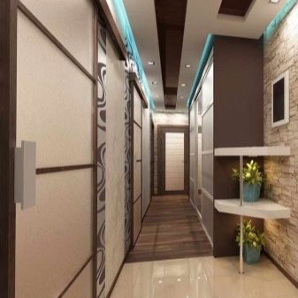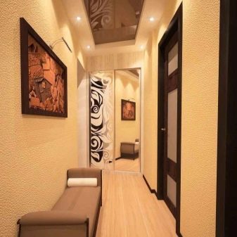 Pour les couloirs, qu'il s'agisse de "Khrouchtchev" ou de "Brezhnevka" dans une maison à panneaux, les petites tailles sont des formes caractéristiques et souvent non standard. Les problèmes d'un couloir étroit se font surtout sentir dans les familles nombreuses, et la perception d'un tel espace laisse beaucoup à désirer. Et si l'agrandissement de la zone de \ u200b \ u200bla pièce est le plus souvent impossible pour des raisons techniques, le deuxième inconvénient est résolu à l'aide d'un design moderne.