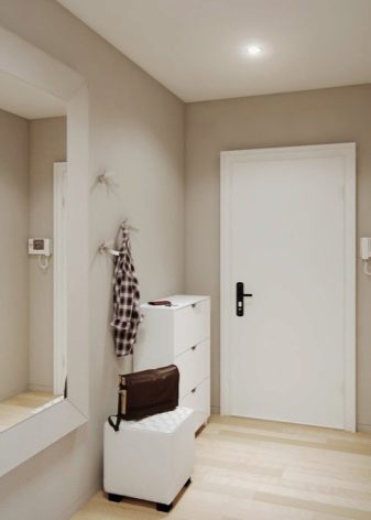 Il est tout à fait possible d'équiper la décoration intérieure de la porte d'entrée ou du mur du meuble d'attaches avec un miroir.