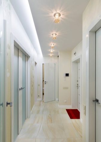 - Plafond. Décorer le plafond, par exemple, sous la forme d'un ciel diurne, animera considérablement la perception globale du couloir.