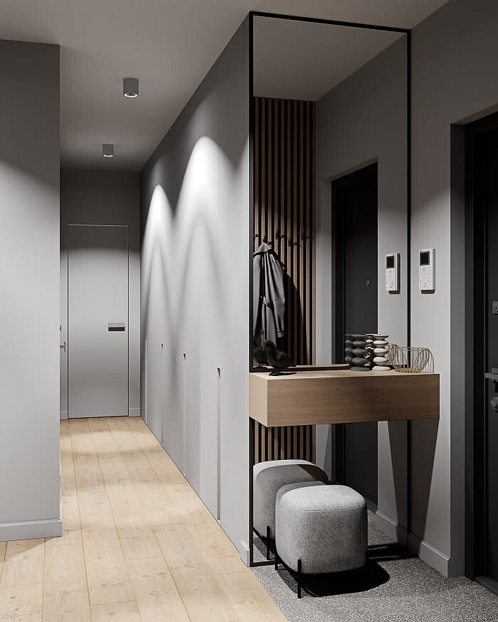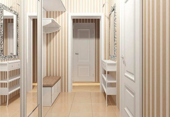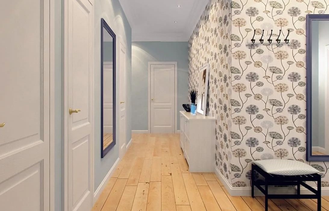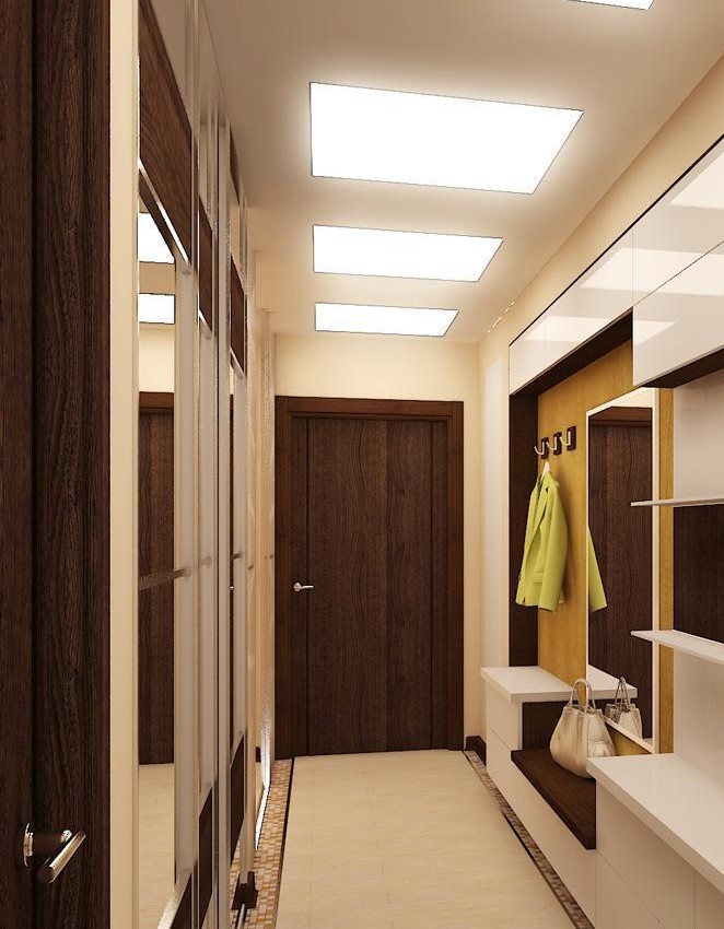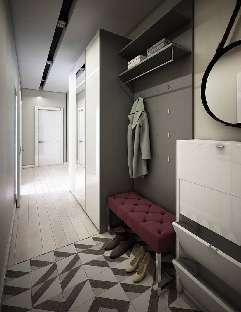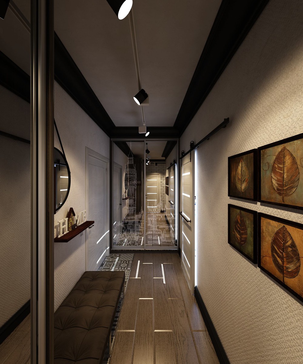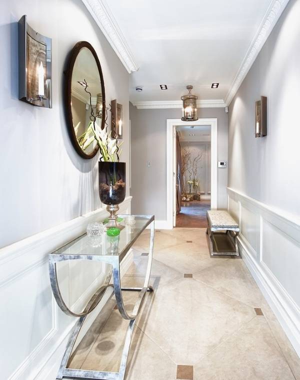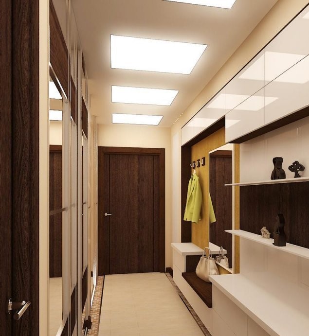 - combinant différentes couleurs et nuances, agrandissez visuellement un petit couloir;
