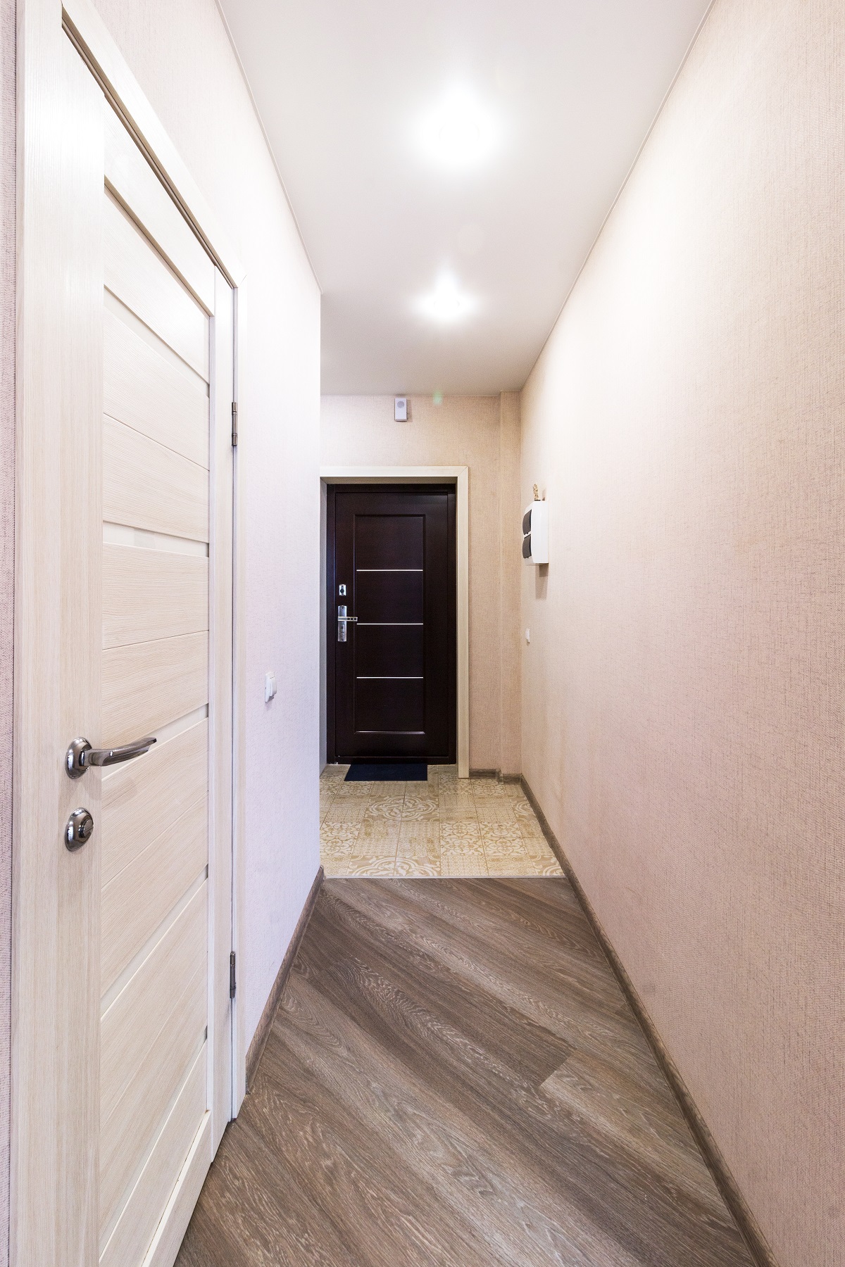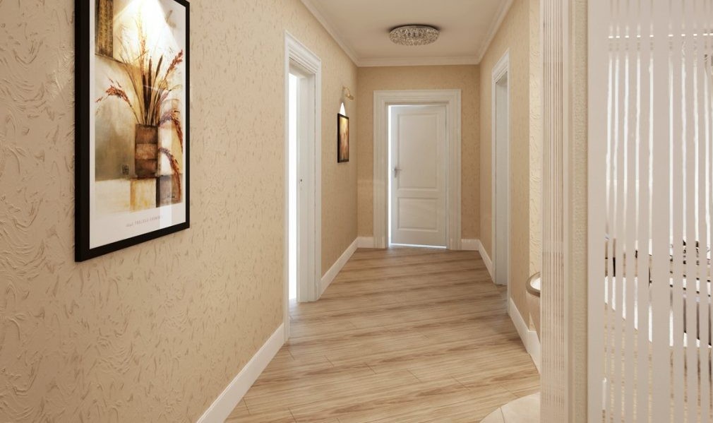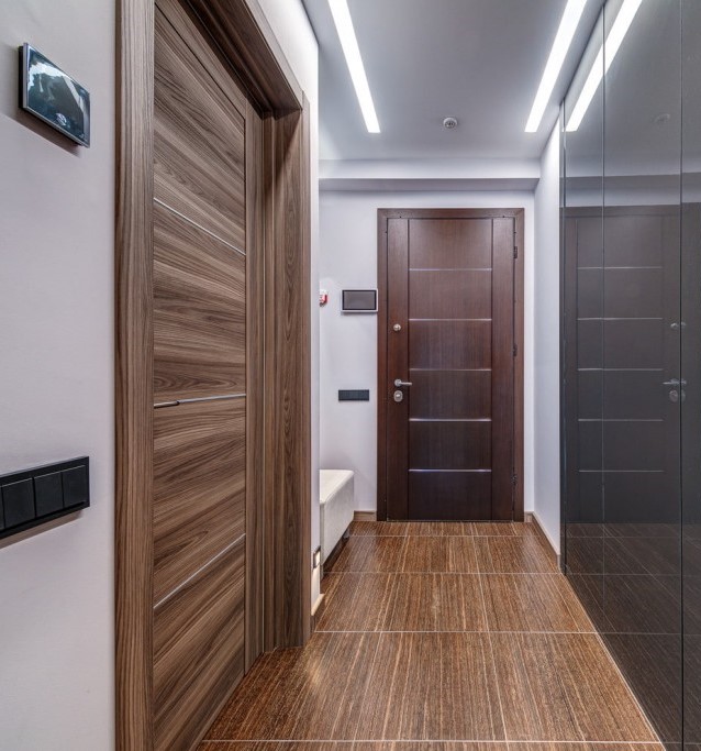 Les plinthes allongées aux couleurs claires et les garnitures de porte, associées à un sol similaire, augmentent visuellement l'espace. Les plafonds colorés favorisent la compression spatiale visuelle.