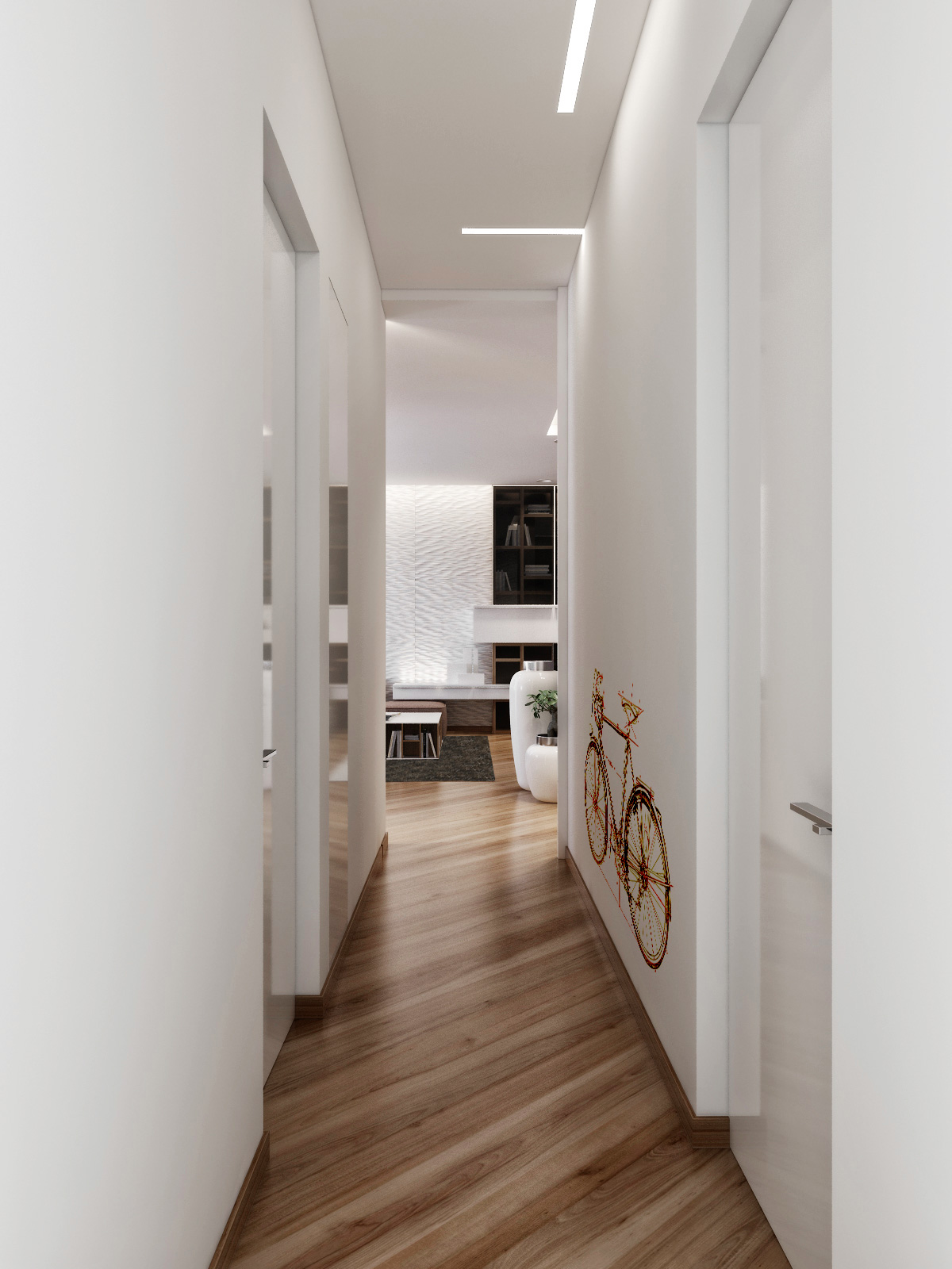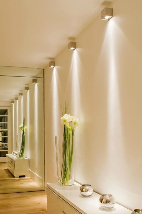 Lorsqu'il éclaire le milieu d'un long mur, il devient visuellement plus court et la configuration du couloir se rapproche d'une forme carrée.