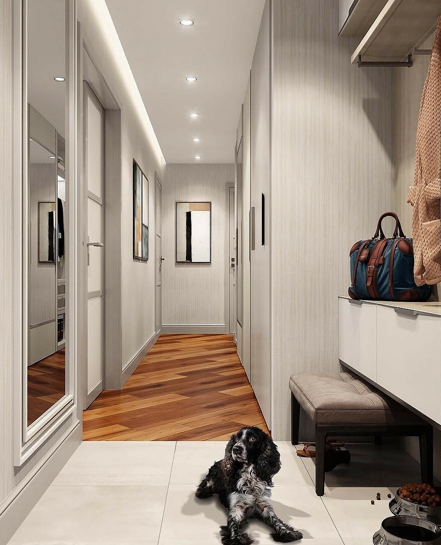 Après tout, un couloir étroit peut être visuellement agrandi en combinant le zonage du mobilier, l'éclairage et la décoration.