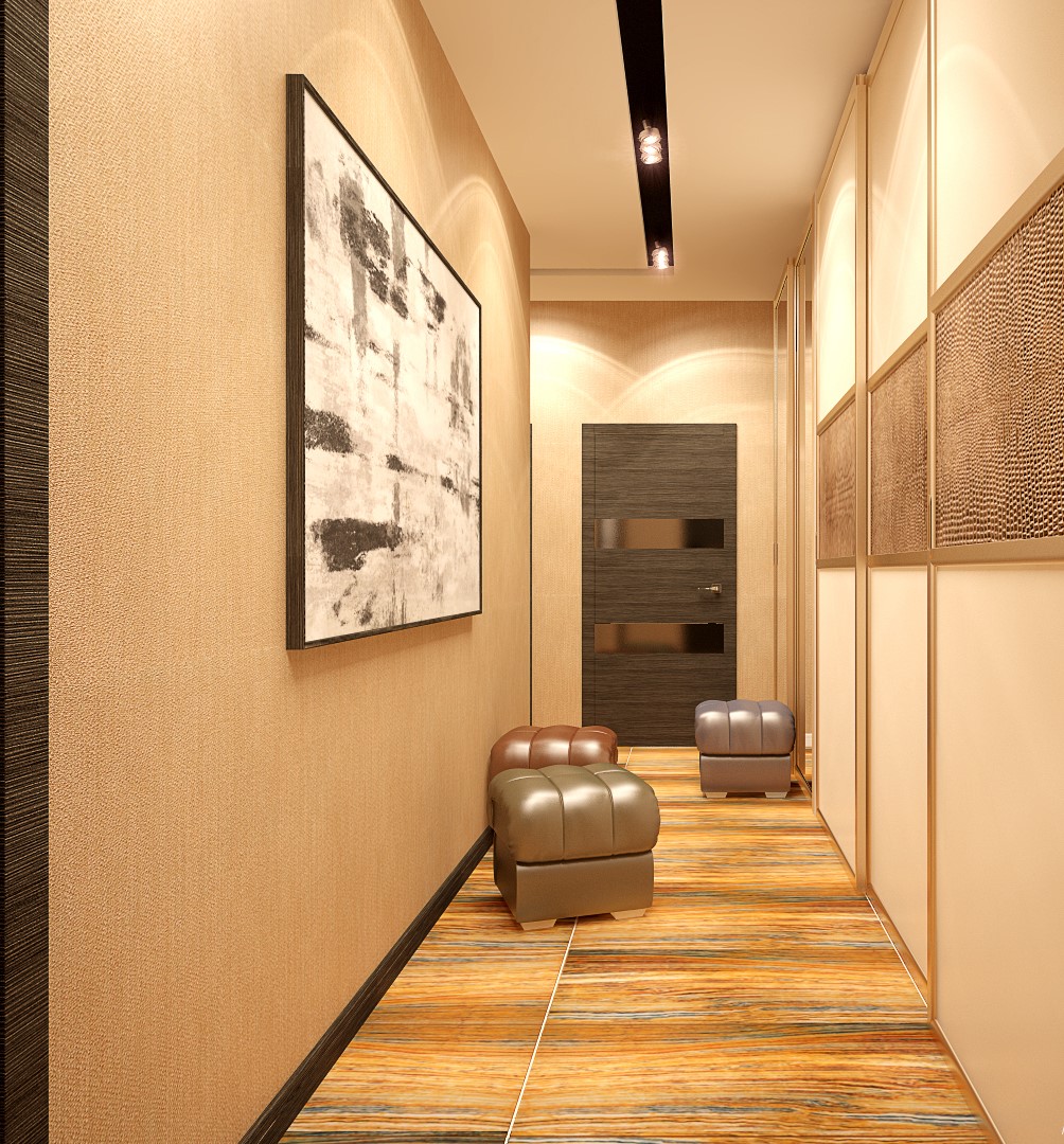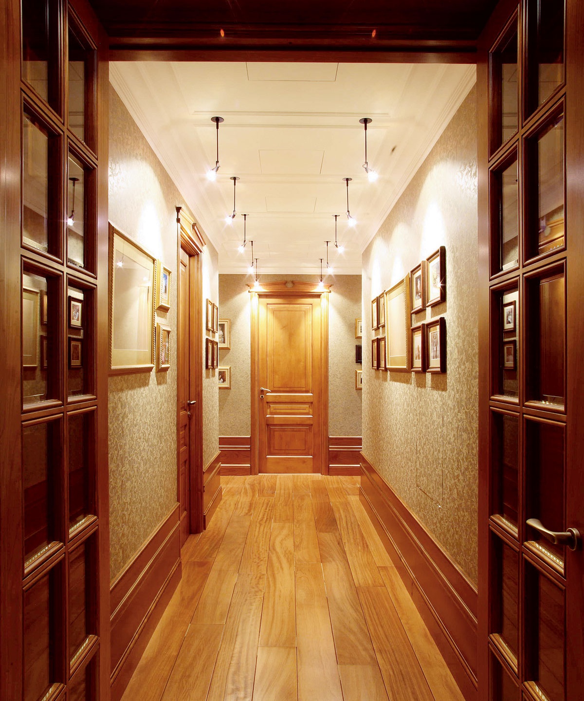 - combiner harmonieusement un certain nombre de couleurs en créant des accents sur l'une ou l'autre partie du couloir;