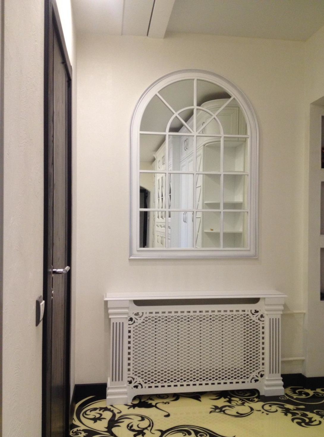 - Miroir-fenêtre (faux) C'est un excellent moyen de relâcher la pression d'un mur blanc. Un cadre bouclé avec des volets et une feuille de miroir à l'intérieur suffisent - et le design intérieur d'origine est prêt. Un tel élément est fonctionnel et donne une sensation complète d'espace.
