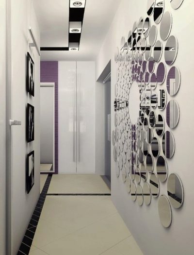 Il convient de garder à l'esprit que pour les pièces étroites, la meilleure solution serait d'utiliser une série de petits miroirs, car l'expansion visuelle devient plus uniforme.