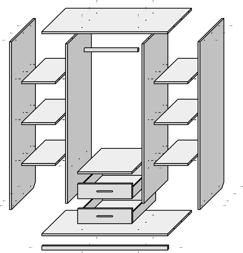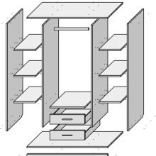 Les meubles d'armoire ont tous les murs et toutes les façades. Elle est dite autonome, elle prévoit de se déplacer d'un endroit à l'autre selon les besoins. Il a une hauteur sous plafond, différents paramètres de longueur, le nombre de feuilles.