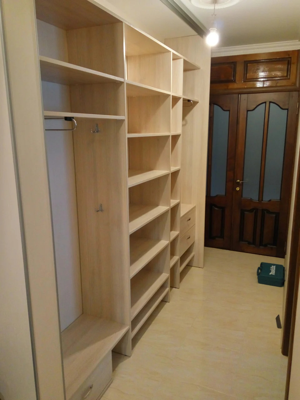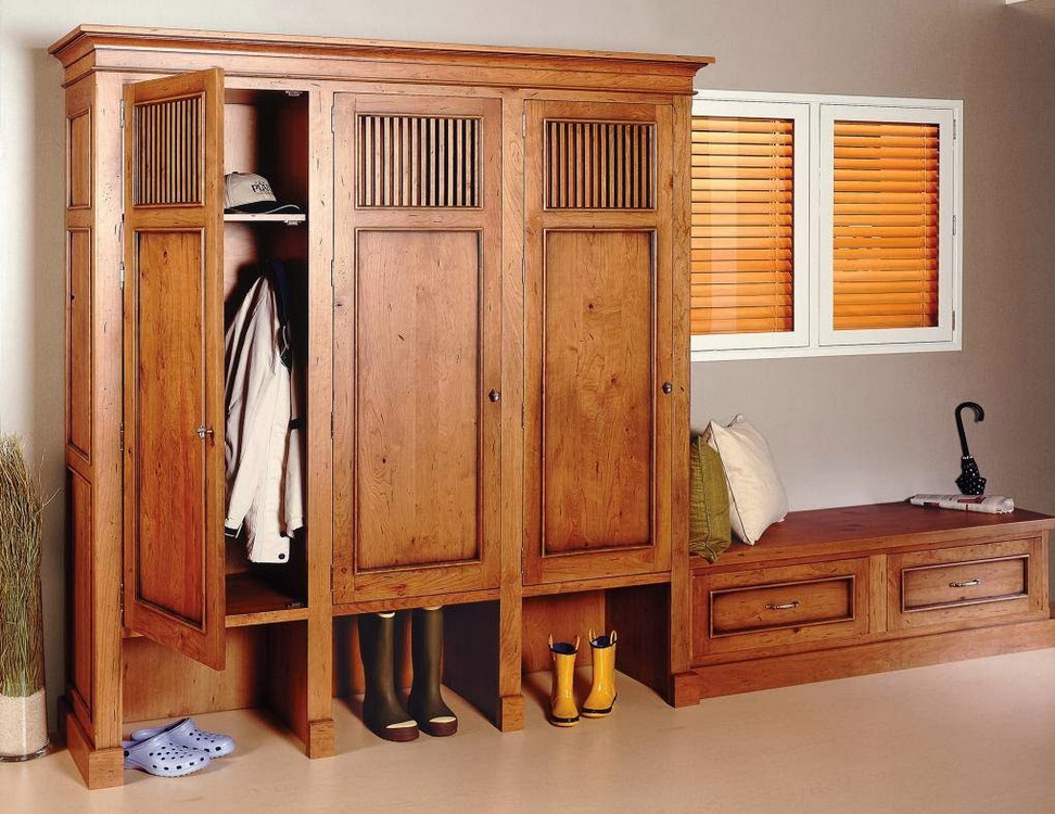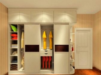 Tout l'espace interne y est impliqué. Les produits sont équipés de systèmes de stockage pour les petits et grands articles. De telles armoires peuvent devenir des couloirs, des vestiaires, des organisateurs, des étagères fermées.