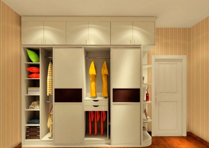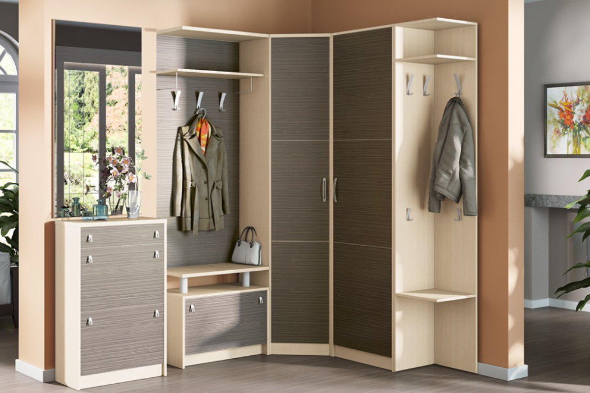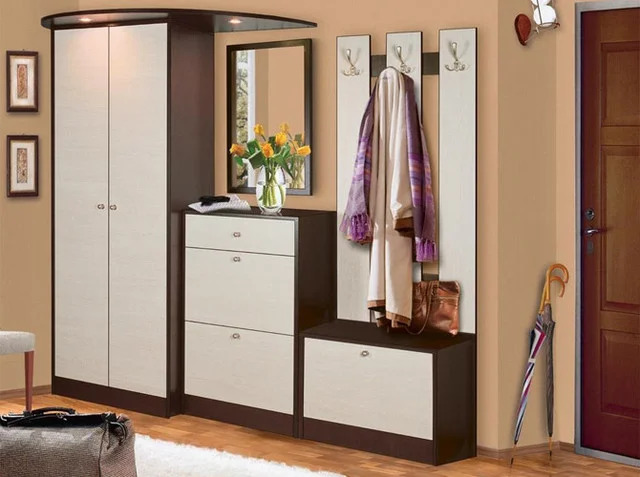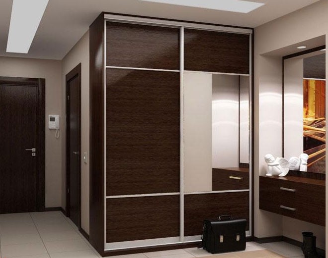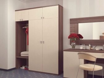 Le type de construction est sélectionné en fonction de leurs propres préférences. Certains modèles ont des pivots, d'autres pas. Les armoires sectionnelles peuvent avoir des modules avec des étagères sous lesquelles vous pouvez cacher des chaussures.